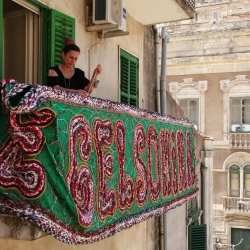 Casa Don Puglisi è il primo luogo ad accogliere l'opera in esposizione . «Ho scelto la Casa Don Puglisi, perché da anni la Casa è il simbolo di questo tipo di accoglienza, dando alle donne in difficoltà non solo l’amore di una casa ma anche l’opportunità di un lavoro dignitoso e assicurando ai loro figli il diritto allo studio, diritto fondamentale per tutti i bambini del mondo. Così la mia ricerca artistica basata sui temi dell’accoglienza, dei diritti, dell’amore, dell’uguaglianza, del lavoro e del rispetto, si intreccia con la realtà quotidiana di Casa Don Puglisi: un intreccio che vuole fare ascoltare la voce dei più deboli», conclude l’artista.