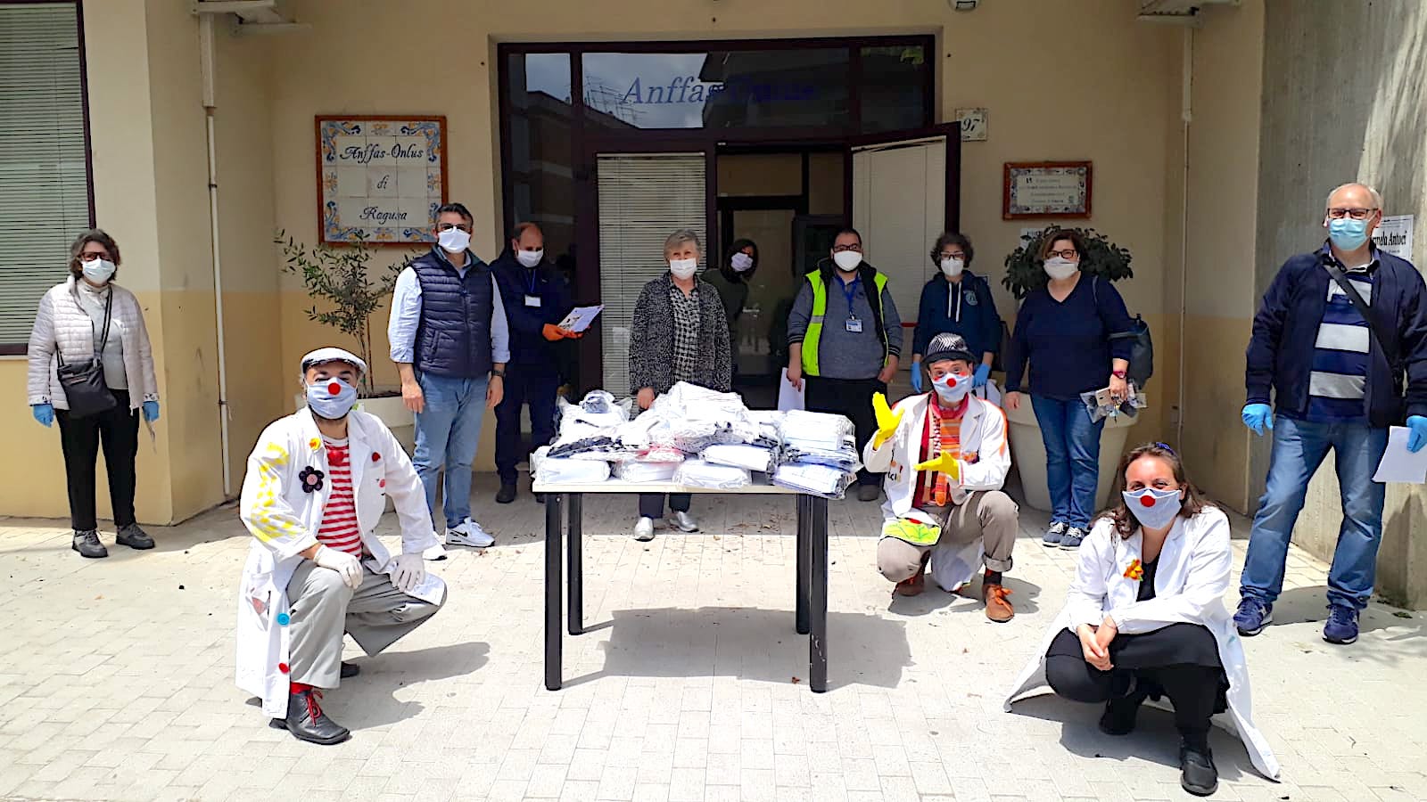 Nei giorni scorsi clown dottori e volontari hanno donato mascherine realizzate nell’ambito di questo grande progetto di comunità anche a varie case di riposo, a Medicare e Samot, ai referenti del dipartimento oncologico e hospice dell’ospedale Maria Paternò Arezzo, al Centro per l’Impiego e prima ancora al Comune, Prefettura, Questura e Polizia Municipale.