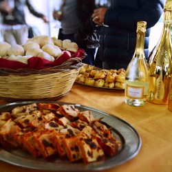 Il primo evento si è svolto presso il bar-ristorante “La Loggia”: ad accoglierci, i padroni di casa Alessia e Giuseppe D’angelo che hanno proposto un menù tipico della tradizione iblea. Ad accompagnare l’antipasto tipico ragusano, un Pas-Dosé di Bottega, un vino spumante secco metodo Charmat con un residuo zuccherino inferiore ai 3 grammi per litro. Si tratta di un vino molto particolare, che lascia in bocca una certa acidità. La caratteristica principale è la sua freschezza e ciò lo rende particolarmente versatile.