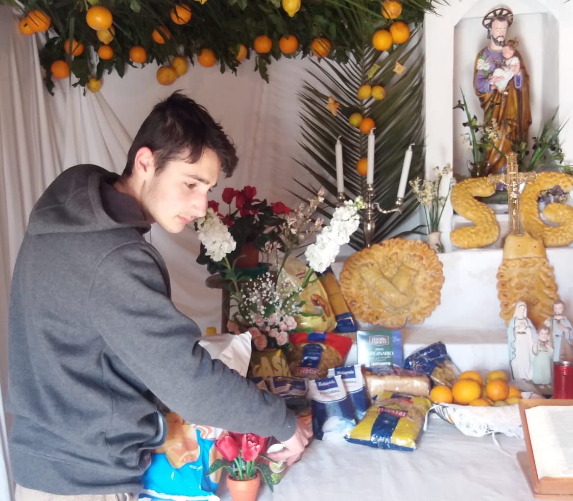 Tradizione e fede non solo a Santa Croce Camerina, dove da sempre si fanno le “cene” dedicate a San Giuseppe, ma anche a Ragusa. E quel che colpisce di più è che a farle è un giovane che non vuol far perdere le tradizioni. E’ il caso di Mattia Tumino che ha 17 anni ed è devotissimo a San Giuseppe. Vive a TreCasuzze. A Natale fa un presepe enorme che piace a tantissimi. Qualche mese fa aveva fatto una mostra e adesso si è cimentato nella tavolata di San Giuseppe realizzandola prestando attenzione ad ogni minimo particolare. Una ulteriore curiosità, i pani li impasta lui stessi e li cucina al forno. E’ il nipote dell’indimenticato intellettuale Federico Hoefer. contributo editoriale di Rossella Schembri