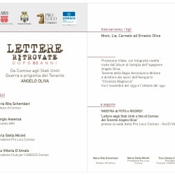 Presso la sede della Pro Loco di Comiso inoltre, è stata allestita una mostra di foto e ricordi, che saranno esposte insieme alle lettere dagli Stati Uniti del tenente Angelo Oliva. Lettere giunta a destinazione dopo 80 anni.