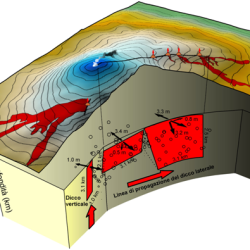 Nelle aree vulcaniche, i dicchi possono risalire dal profondo verso la superficie e. infine, muoversi attraverso propagazione laterale, in questo caso alimentando pericolose eruzioni sui fianchi del vulcano. In generale i rischi associati a un dicco eruttivo crescono all’aumentare della sua lunghezza laterale di propagazione. Più è lunga la sua propagazione, maggiore è il rischio in quanto l’intrusione può raggiungere punti di emissione lavica più prossimi ai centri abitati e alle infrastrutture umane.