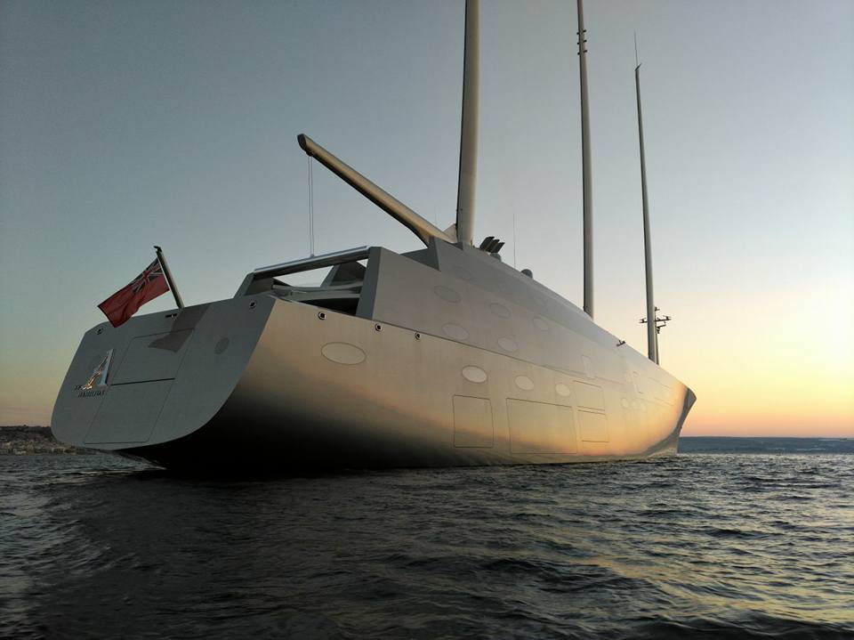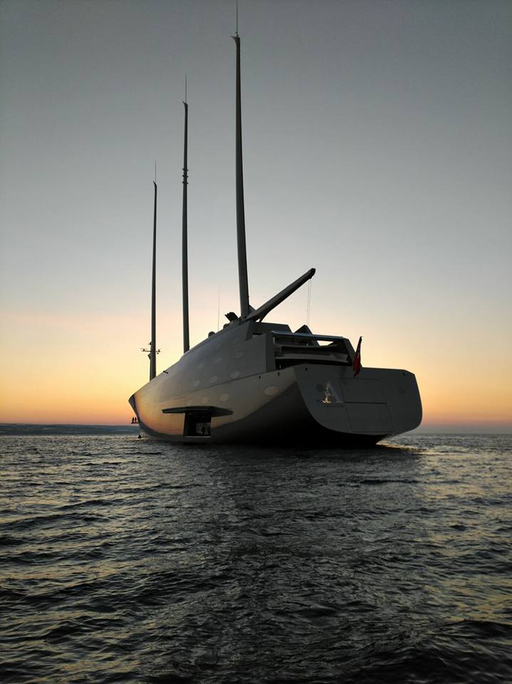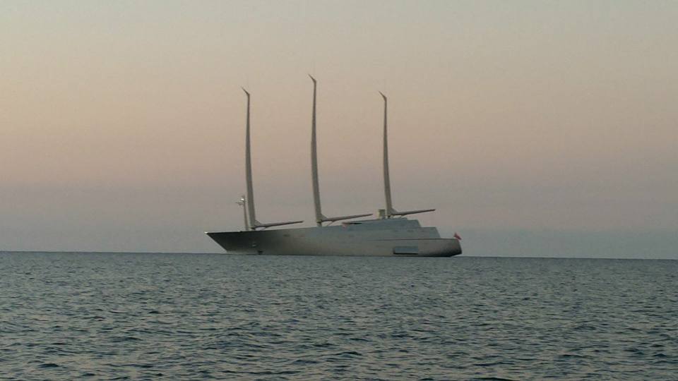 Una delle imbarcazioni più grandi al mondo, lo Sailing Yacht A dell’industriale russo Andrey Melnichenko, ha fatto una piccola sosta davanti al Porto Turistico Marina di Ragusa. Stamani all’alba, le foto si riferiscono alle prime luci del giorno, c’è stata naturalmente grande curiosità dopo l’arrivo di ieri sera dell’imponente imbarcazione costata 450 milioni di euro. E ‘ un tre alberi da 100 metri. Battente bandiera delle Bermuda, ha interni lussuosissimi e pesa 12.600 tonnellate. E’ stato disegnato dall’archistar Philip Starck.