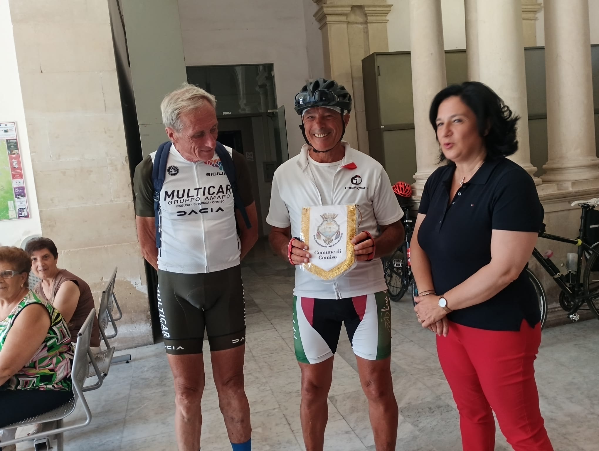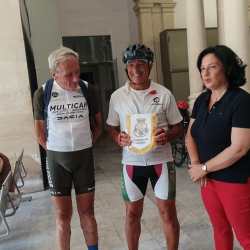 Questa mattina il via al comune, salutati dal sindaco Maria Rita Schembari che ha consegnato loro una bandiera siciliana, un gagliardetto del comune e due piccole pubblicazioni che presentano la cittadina: al termine del viaggio Leonardo e Dino li consegneranno al sindaco di Sondrio, quale simbolo di gemellaggio e di amicizia. “Portate nel vostro viaggio un messaggio di cultura, di amicizia e di pace” ha detto Schembari. I due ciclisti nel primo pomeriggio sono arrivati a Noto. Domani è in programma l’incontro con gli amministratori di Noto e Avola, quindi la seconda tappa verso Siracusa.