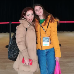 In foto : la Maestra Saveria Tumino e Marta Scalone al teatro Auditor di Sant Cugat di Barcellona sede del concorso Yagp