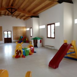 Inoltre ampi spazi all’aperto e *un grande orto didattico delimitato da muri di pietra a secco che permetterà anche **attività scolastiche specifiche.*