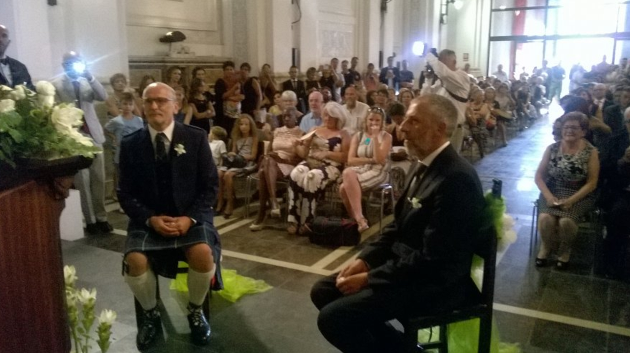 Matrimonio gay a Chiaramonte Gulfi, si è sposato Giancarlo Cutello con il suo ragazzo scozzese. Cerimonia in kilt