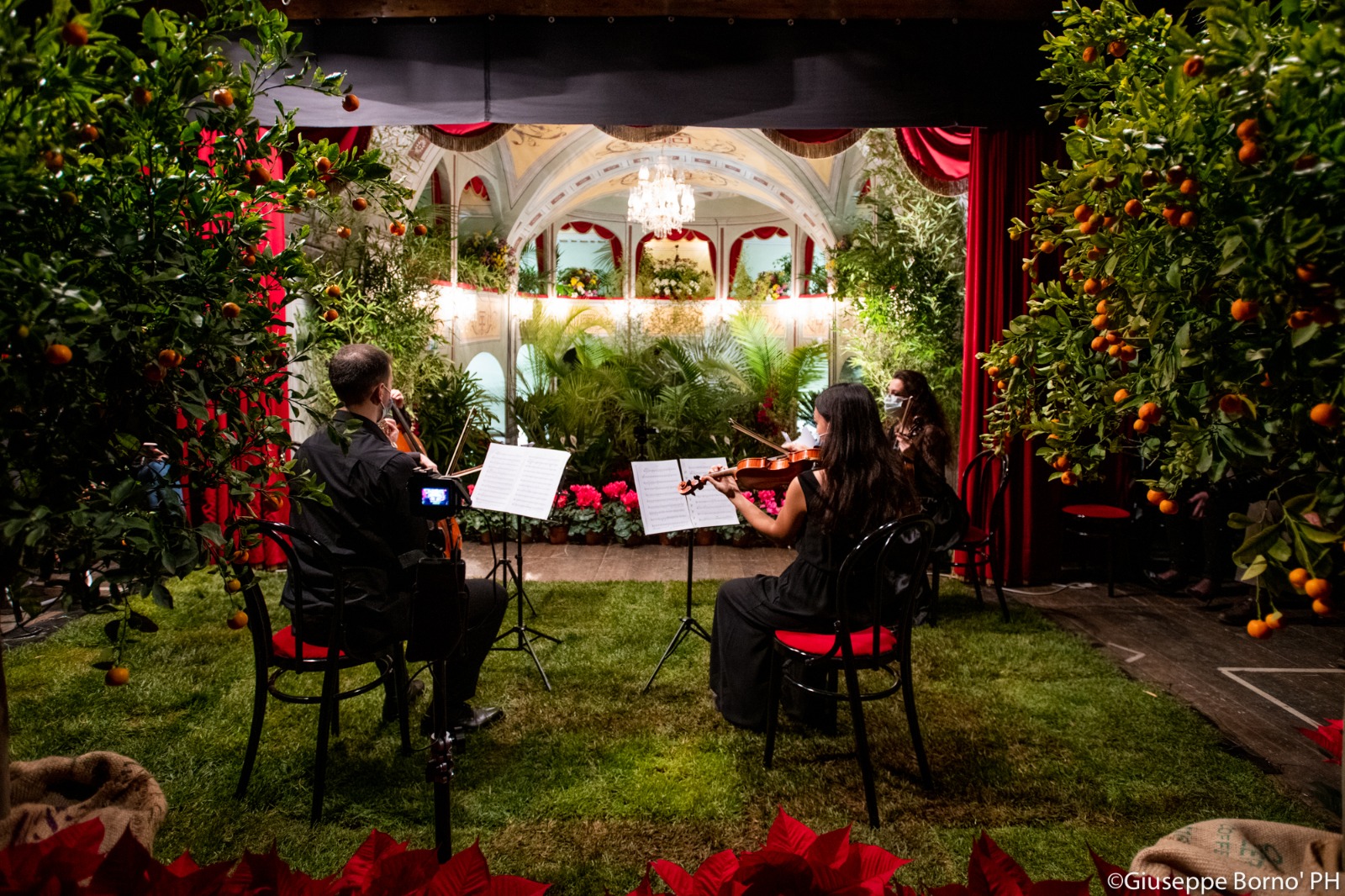 Un Natale davvero speciale. La bellezza sceglie il piccolo scrigno del Teatro Donnafugata di Ragusa Ibla per irradiare energia e speranza al mondo intero. Si sposta sulle note del quartetto d’archi dell’Accademia Teatro alla Scala di Milano, si svela attraverso i colori e i profumi delle piante che ieri hanno occupato la platea e i palchi del piccolo e prezioso teatro ibleo, uniche spettatrici ammesse di un appuntamento unico. “Note di Natura. Più ossigeno per l’arte” è il concerto che le direttrici artistiche del Donnafugata, le sorelle Vicky e Costanza DiQuattro, hanno organizzato per questo Natale, in partnership con Confagricoltura Ragusa e l’Accademia alla Scala milanese, e che ieri a mezzogiorno è stato trasmesso in streaming sulle pagine social e sul canale YouTube del teatro e sui social di Confagricoltura nazionale e Confagricoltura Ragusa.
