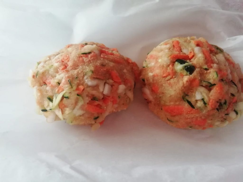 Tritate la carota, la cipolla e la zucchina e mettete tutto in una terrina. Aggiungere la patata lessa precedentemente schiacciata con una forchetta che sarà anche il nostro collante al posto delle uova. Mescolare il tutto con abbondante pane grattugiato e aggiungere erbe aromatiche, per esempio timo, rosmarino e prezzemolo tritato. Regolare di sale e dare all’impasto la forma di mini burger.