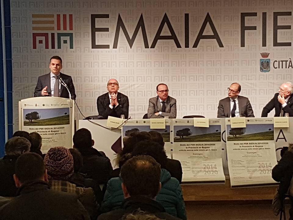 “I ritardi nell’attuazione del PSR SICILIA sono enormi ma il governo regionale farà di tutto per risolvere le criticità nei territori soprattutto in provincia di Ragusa”: è l’impegno preso dall’assessore regionale all’agricoltura Edy Bandiera intervenuto venerdì 16 febbraio presso la Sala Congressi della Fiera Emaia a Vittoria al convegno dal titolo: “*Stato del PSR SICILIA 2014/2020 in Provincia di Ragusa, criticità emerse nelle misure già in itinere*”. Il confronto, organizzato da pmiSicilia, Ordine degli Agronomi e Confagricoltura è stato molto partecipato a dimostrazione di come il tema sia fortemente sentito nel territorio. Nutrita la rappresentanza di imprese e professionisti ma anche quella istituzionale con i sindaci dei territori interessati e la deputazione regionale e nazionale iblea.