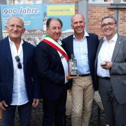 Una delegazione modicana formata dagli Assessori Giorgio Linguanti e Pietro Lorefice ha partecipato durante il fine settimana appena trascorso ai festeggiamenti per i 900 anni della fondazione della Città di Wolfenbuttel, Bassa Sassonia, Germania. La pittoresca cittadina che si trova a metà strada tra due colossi economici e finanziari come Hannover e Wolfsburg (casa della Volkswagen), ha visto nascere negli anni uno dei più prestigiosi brand a livello mondiale nel campo della ristorazione, l’amaro Jagermeister. E proprio i due prodotti più rappresentativi delle Città, cioccolato e amaro, si sono incontrati nell’occasione con i due rappresentanti dell’Amministrazione che hanno consegnato al Direttore Amministrativo della nota azienda, Andre Volke, i tradizionali “cuticci” e le barrette dedicate all’evento con i due loghi ben visibili fornite dal Consorzio di Tutela del Cioccolato di Modica. “Abbiamo discusso con il direttore Volke di possibili scenari di collaborazione futura tra i nostri due prodotti – dichiarano i due Assessori modicani – a partire dalla prossima edizione di ChocoModica quando abbiamo invitato, oltre ad una delegazione di Wolfenbuttel, anche i rappresentanti dello Jagermeister. Dopo il vino Marsala vogliamo provare quest’altro abbinamento che, siamo sicuri, sarebbe vincente”. Nel corso del fine settimana la delegazione modicana è stata ospitata dalla Città di Wolfenbuttel con il Sindaco Pink che ha fatto da cicerone personalmente sui luoghi di maggiore interesse della splendida cittadina tedesca tra i quali spicca la famosa biblioteca “Herzog August” dove, tra gli altri, è custodito uno dei libri più costosi al mondo, il Vangelo del Duca Enrico il Leone, costato quasi 12 milioni di euro. Le celebrazioni per il novecentenario di Wolfenbuttel hanno visto la partecipazione di decine di migliaia di persone attirate dalla musica che sui tre palchi risuonava ininterrottamente per tutta la giornata e dai tanti stand dello street food tipico tedesco. “Ingredienti semplici ma vincenti – commentano i delegati modicani – che hanno contribuito a rendere indimenticabile il soggiorno in terra teutonica. Ringraziamo di vero cuore il Sindaco Pink e tutta l’amministrazione comunale di Wolfenbuttel che ci hanno accolto facendoci sentire a casa. Ci auguriamo di poter fare altrettanto in occasione di ChocoModica per dargli la possibilità di poter visitare la nostra terra. Per noi è stato un grande onore essere stati scelti insieme ad altre città europee per rappresentare l’Italia in una occasione tanto importante”.