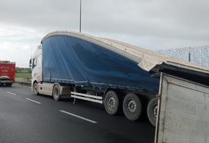 Modica: forte vento fà volare il furgonato di un autocarro e blocca la circolazione
