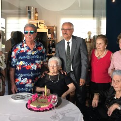 Un evento che non capita tutti i giorni e che tutti vorrebbero vivere da protagonista. Oltre ai figli, ai nipoti e pronipoti al suo fianco ha avuto la sorella Melina che, coi suoi 105 anni (a novembre) si è presentata puntuale, in grande forma e pronta ad onorare l’appuntamento.