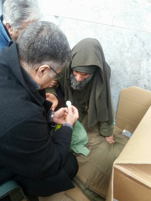 Monsignor Lorefice ha somministrato l’eucaristia a Biagio Conte e poi ha pregato per lui.