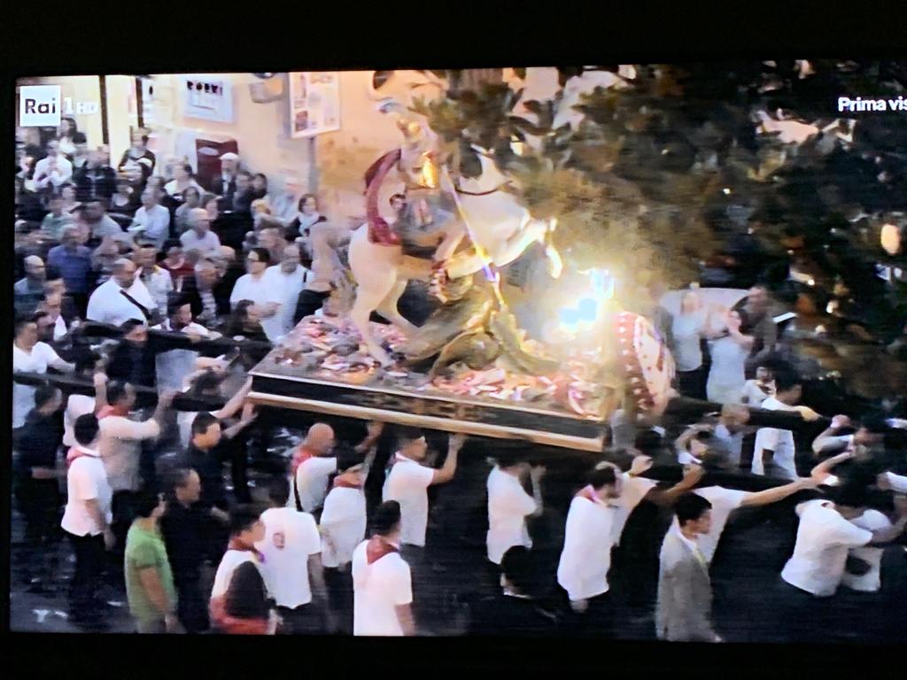 Tra le immagini delle varie location dove si svolgono le intrigate indagini del commissario Salvo Montalbano, come sempre interpretato dall’attore Luca Zingaretti ben diretto dal regista Alberto Sironi, c’è posto per più carrellate che, su Raiuno, raccontano velocemente la festa, la devozione dei fedeli, la grande partecipazione.