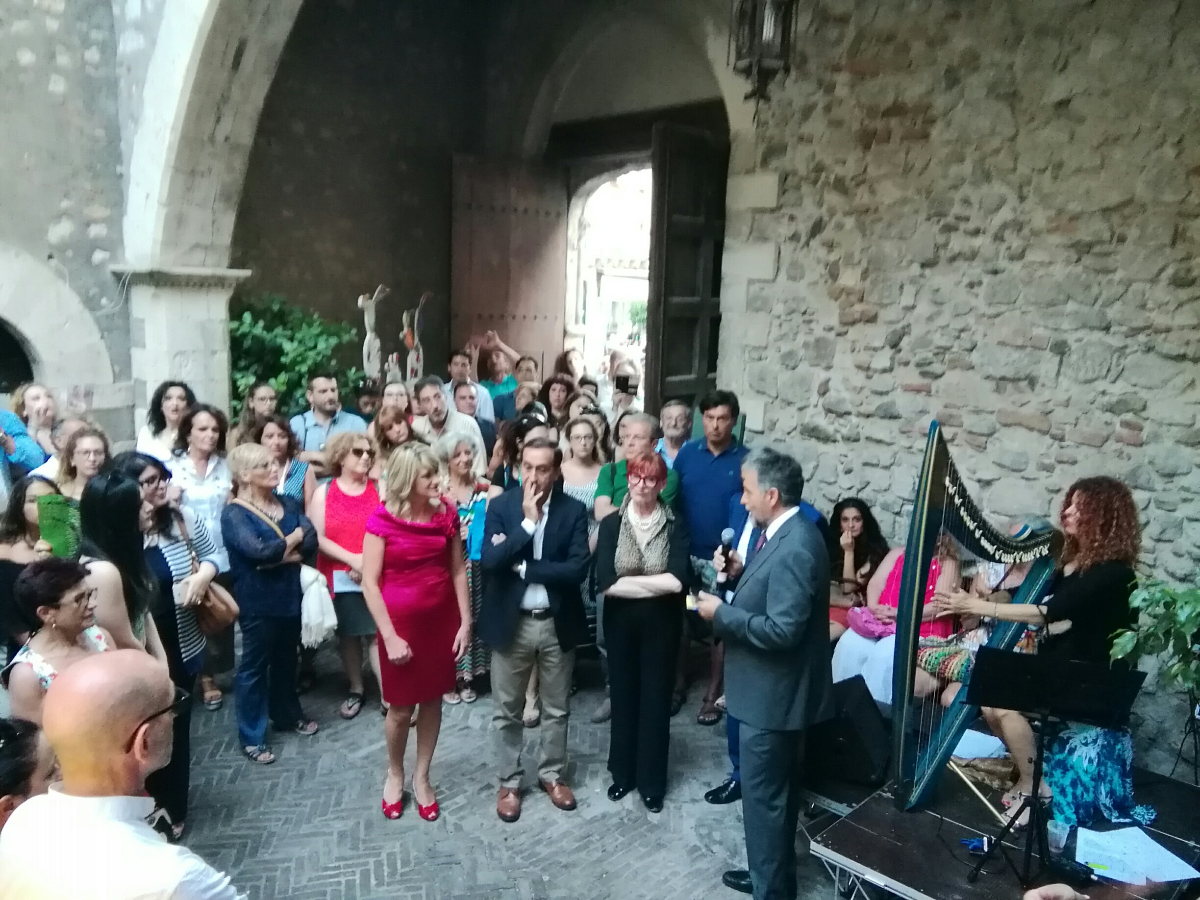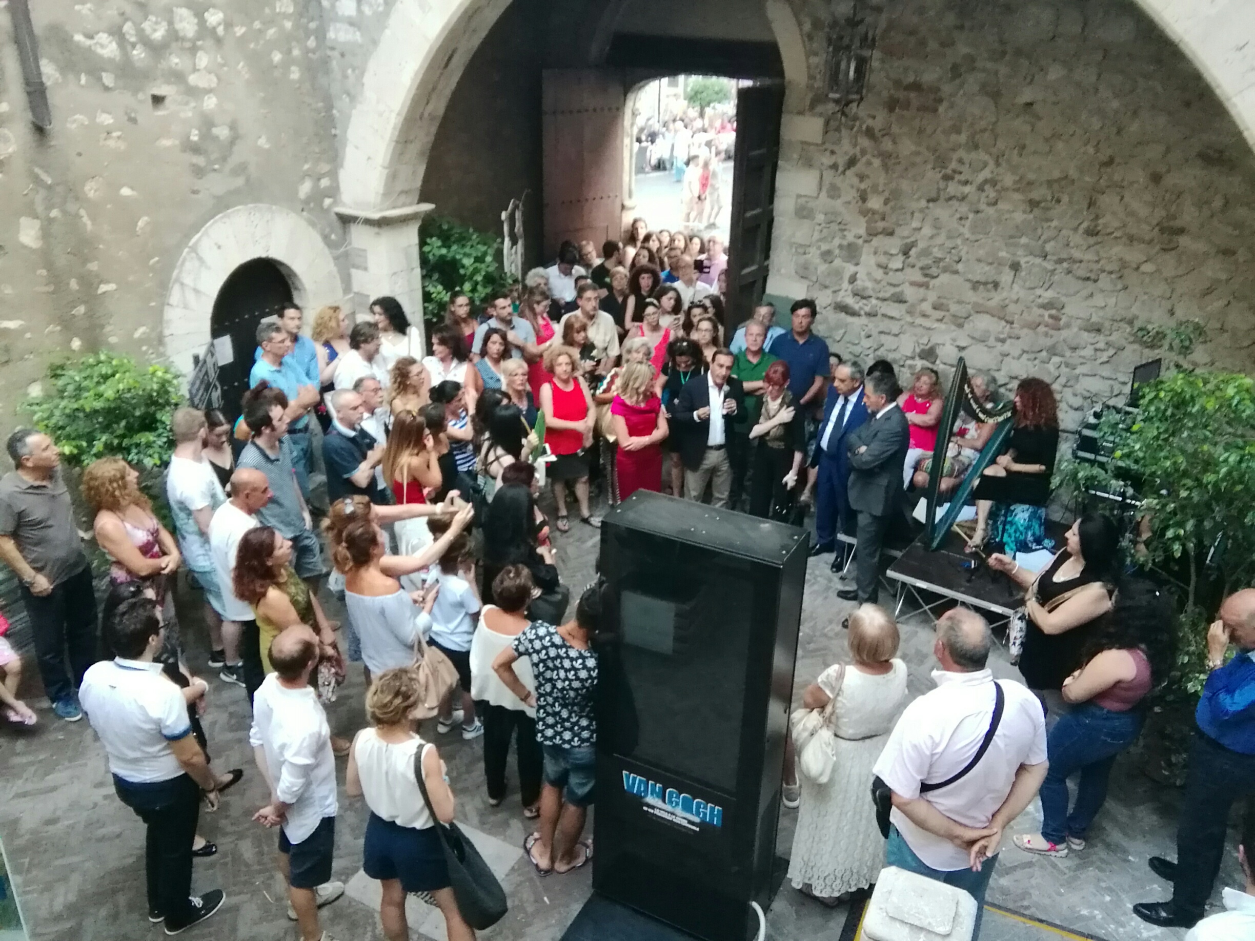 Pubblico delle grandi occasioni, ieri sera, all’inaugurazione della grande Mostra multimediale sull’artista olandese più amato di tutti i tempi. Nella splendida cornice di Palazzo Corvaja, edificio storico, di matrice araba, tra i più rappresentativi di Taormina, con il patrocinio del Comune di Taormina, nel contesto degli Eventi post G7 e dell’Assessorato ai Beni Culturali della Regione Siciliana, ha aperto i battenti l’attesa esposizione considerata “il fiore all’occhiello” delle iniziative culturali taorminesi. Il conosciuto attore Bruno Torrisi, popolare volto televisivo, nel suggestivo cortile, ha celebrato Van Gogh con una serie di letture di brani tratti dalle toccanti lettere di sfogo che Vincent scrisse al fratello Theo, con sottofondo musicale live all’arpa celtica di Rosellina Guzzo. Ad impreziosire la serata, l’esibizione a sorpresa del soprano Marianna Cappellani che con la sua straordinaria voce internazionale ha regalato al pubblico, in attesa di affluire alla mostra, l’Ave Maria di Gounod sempre con l’accompagnamento live dell’arpista Rosellina Guzzo. Sulle note di “Vincent”, brano celebre del cantautore americano Don McLean dedicato all’artista, la scrittrice Giovanna Strano, autrice del romanzo “Vincent in love” (Cairo Ed.) ha invece anticipato in parte, la storia di colui che seppe trasformare il peso della vita in un’estatica bellezza, in attesa della presentazione del volume il prossimo 5 agosto in un’altra serata a tema.