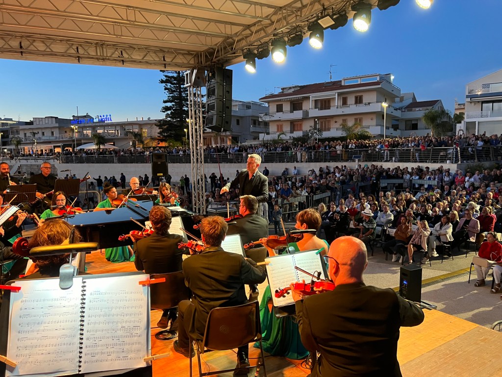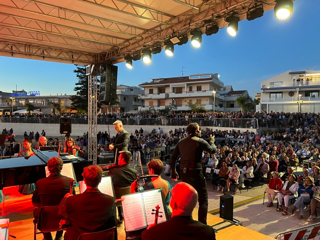 Musica e parole, al tramonto in riva al mare. La Rotonda di Marina di Ragusa ha fatto da suggestiva cornice all’emozionante concerto “Notte di Stelle” di Ensemble Symphony Orchestra, diretta da Giacomo Loprieno. Il tributo unico alle musiche del grande Ennio Morricone ha concluso la prima edizione di Marina Fest, confermando l’altissimo livello delle proposte culturali della manifestazione, ma non solo. L’evento è stato organizzato dall’associazione Bee con il suo presidente Giuseppe Occhipinti e dall’associazione 356 gradi, con il contributo dell’Ars e della Fondazione Federico II di Palermo grazie all’interessamento dell’Onorevole Nello Dipasquale.