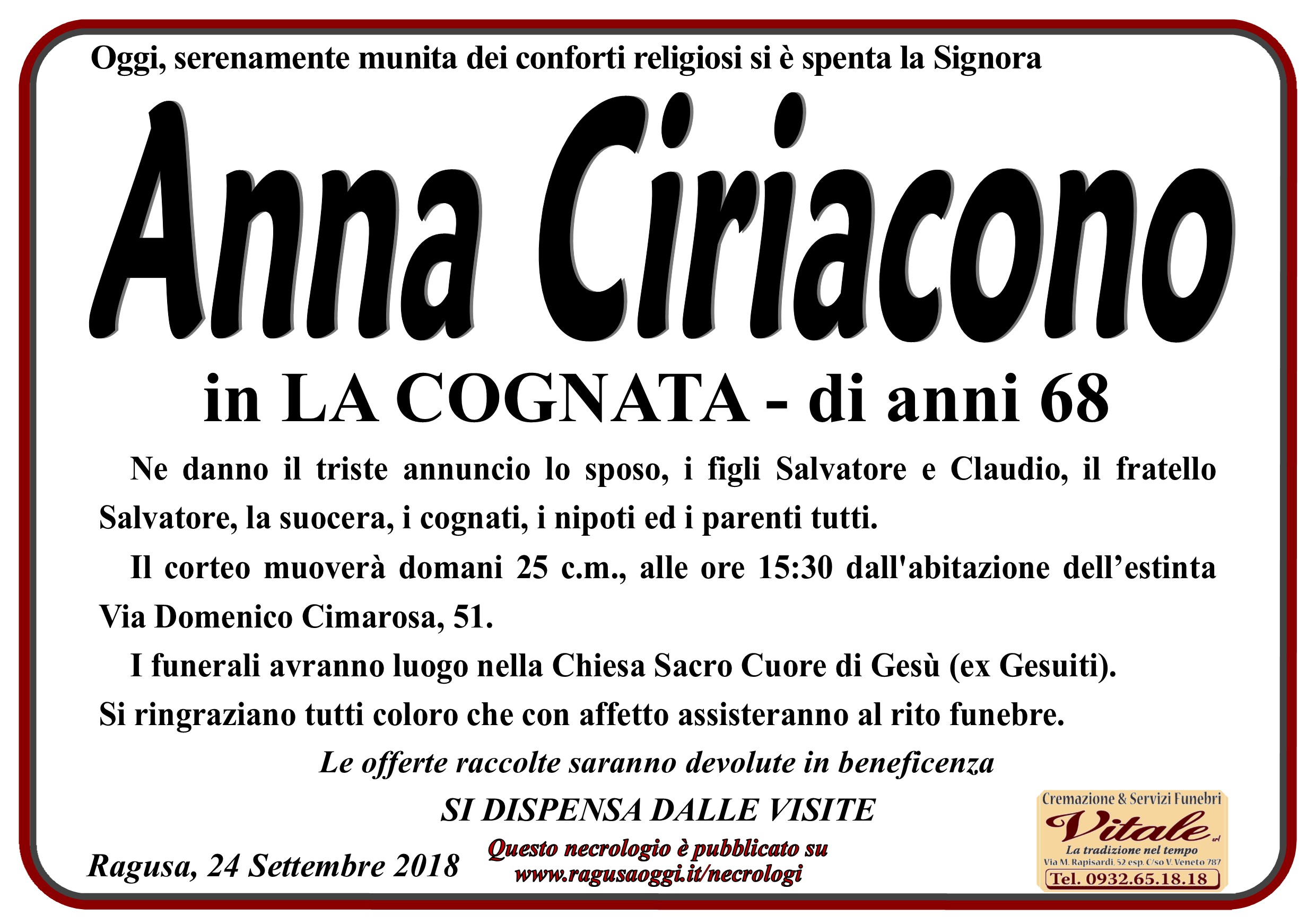 Necrologi: Anna Ciriacono