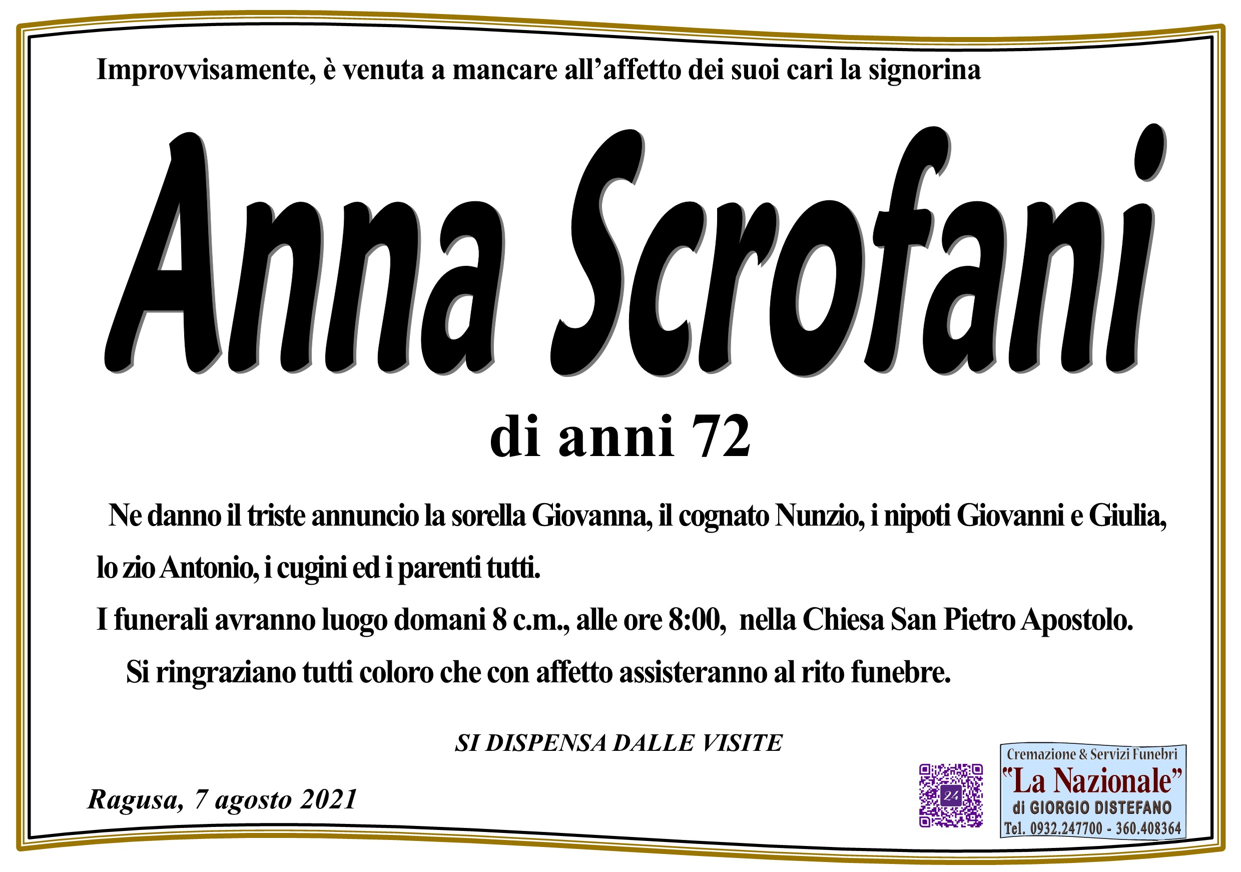 Necrologi: Anna Scrofani