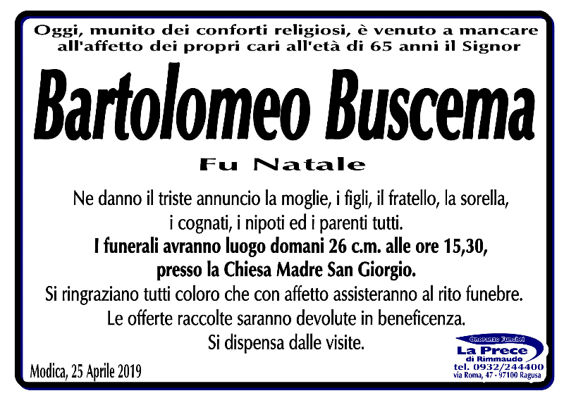 Necrologi: Bartolomeo Buscema