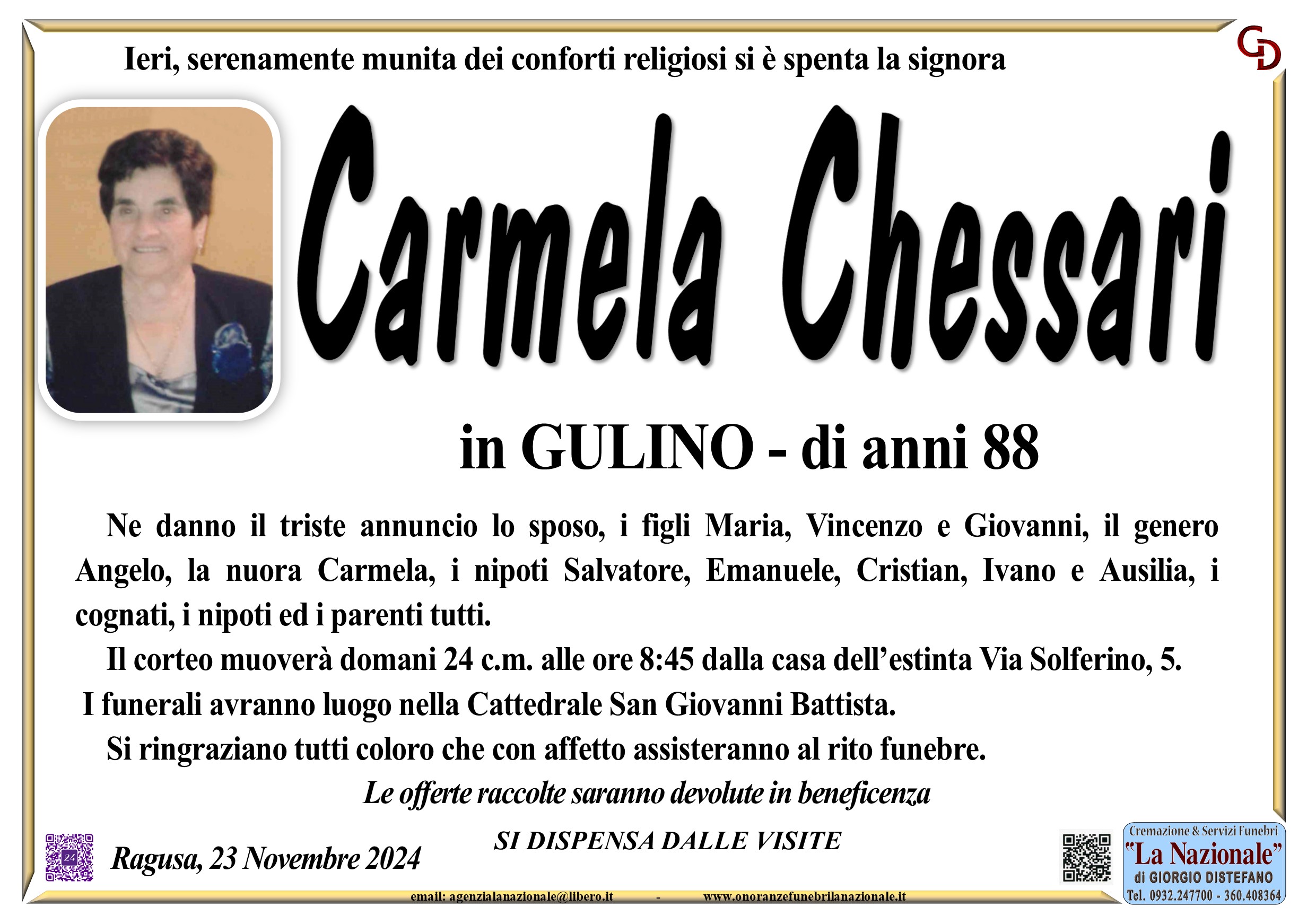 Necrologi: Carmela Chessari