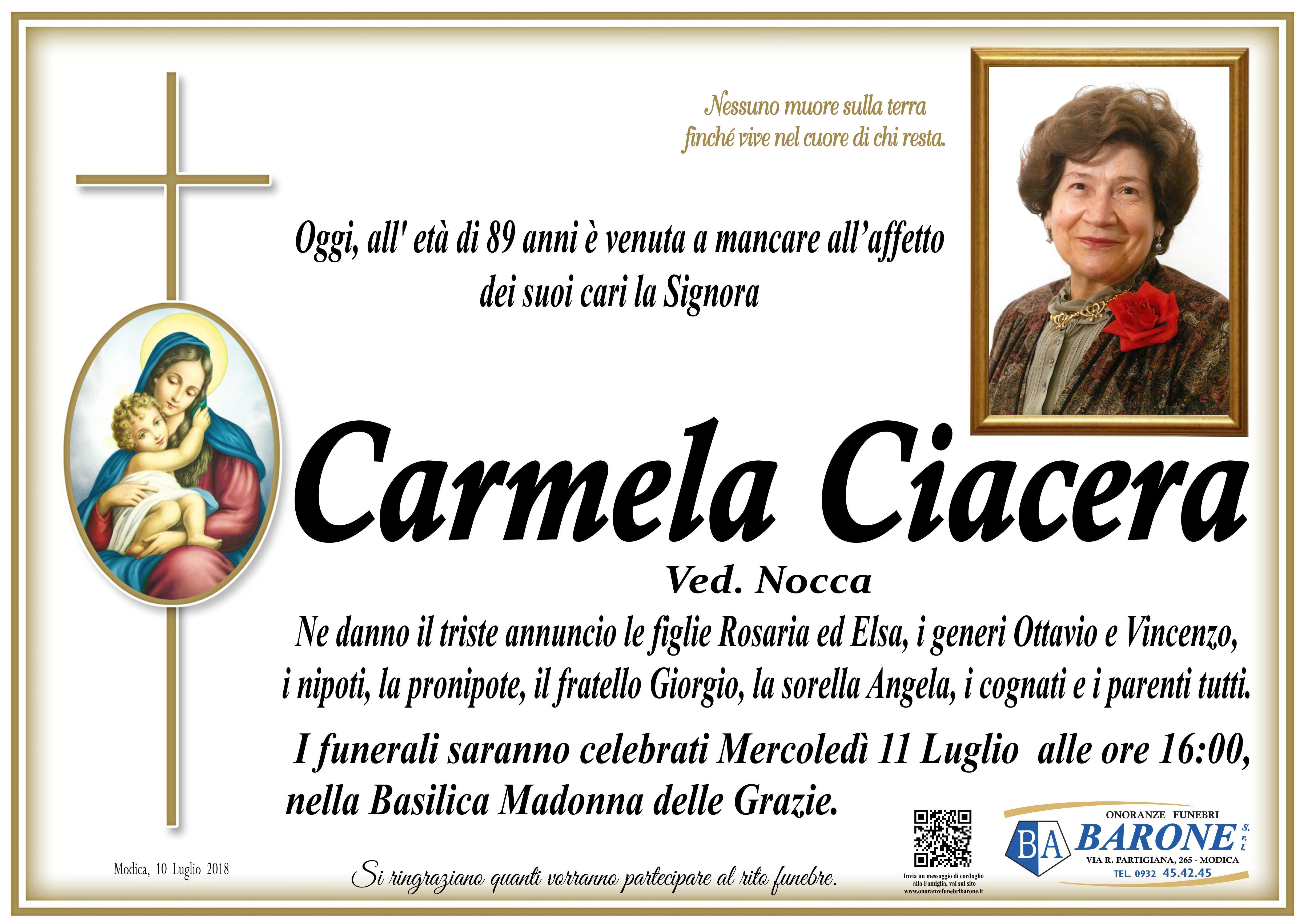 Necrologi: Carmela Ciacera