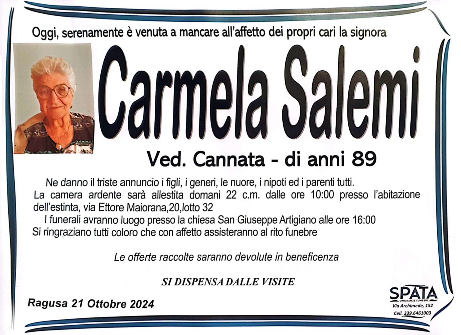 Necrologi: Carmela Sallemi
