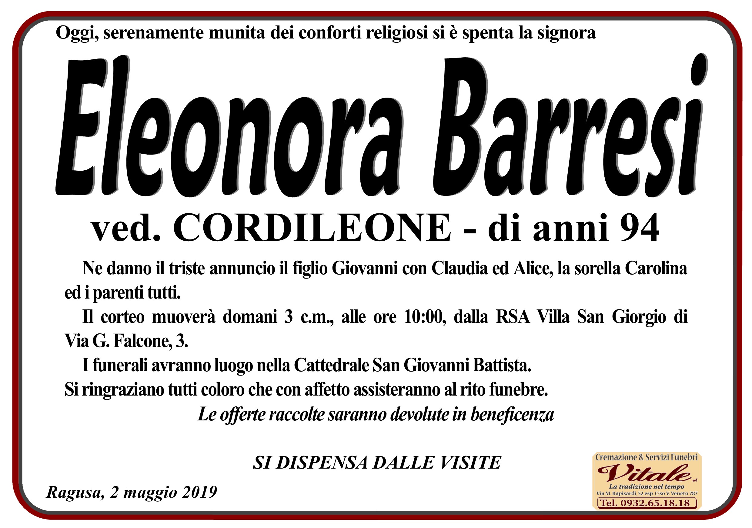 Necrologi Eleonora Barresi