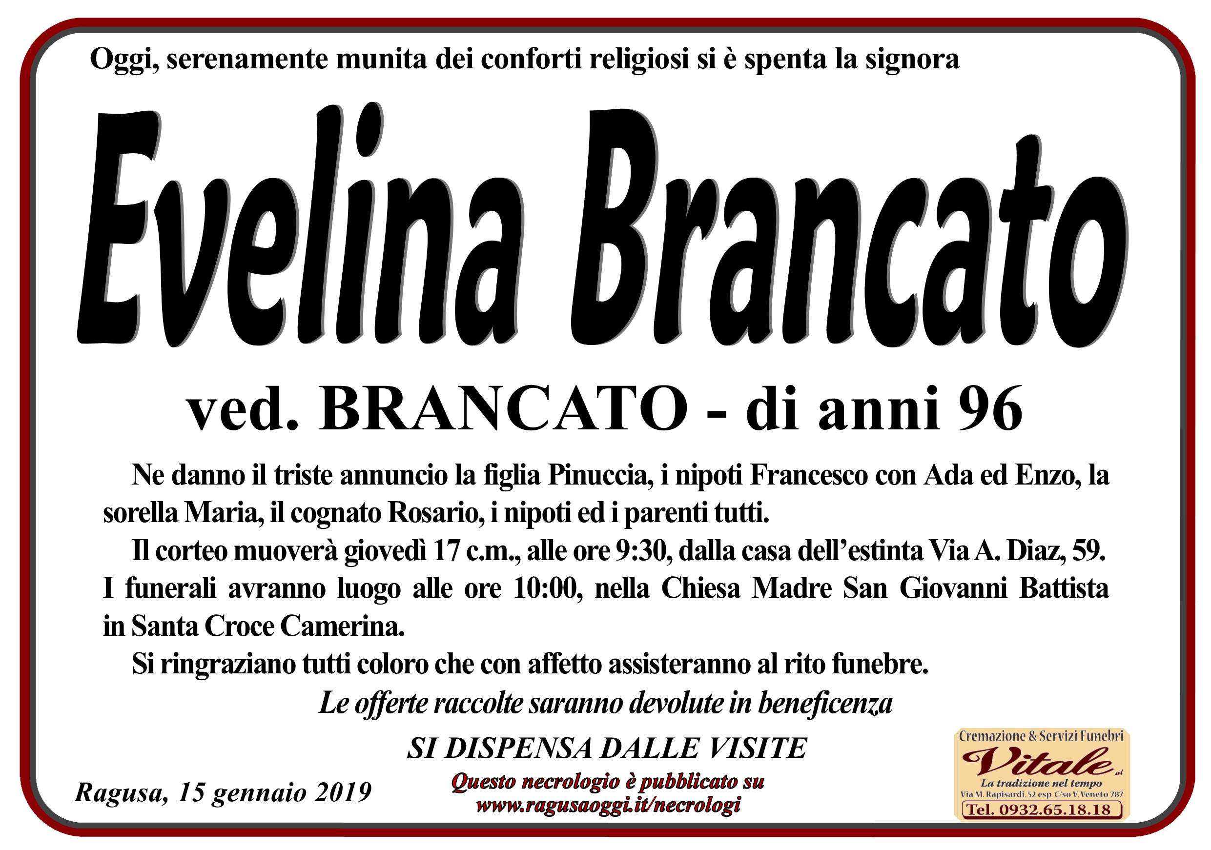 Necrologi: Evelina Brancato