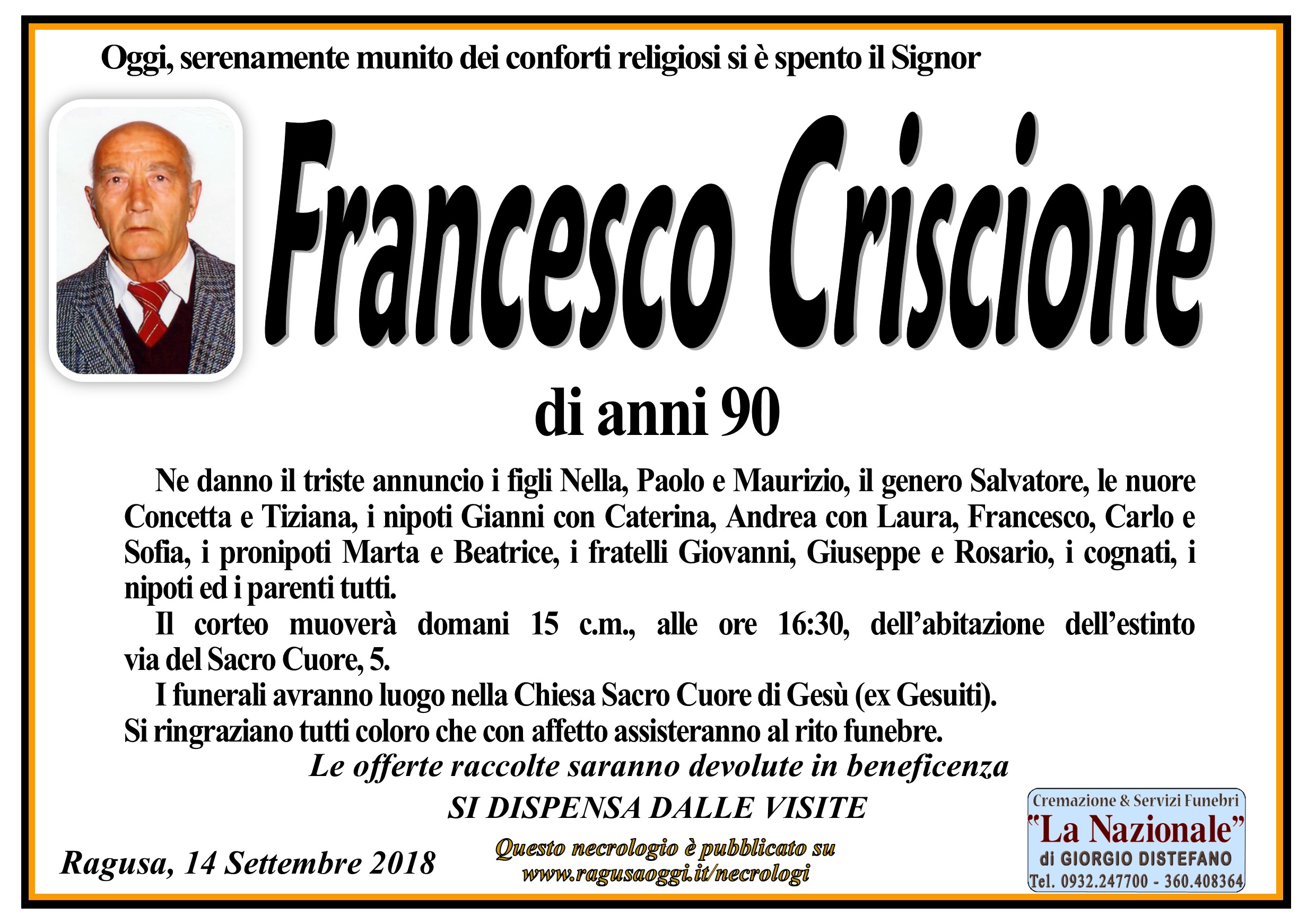 Necrologi: Francesco Criscione