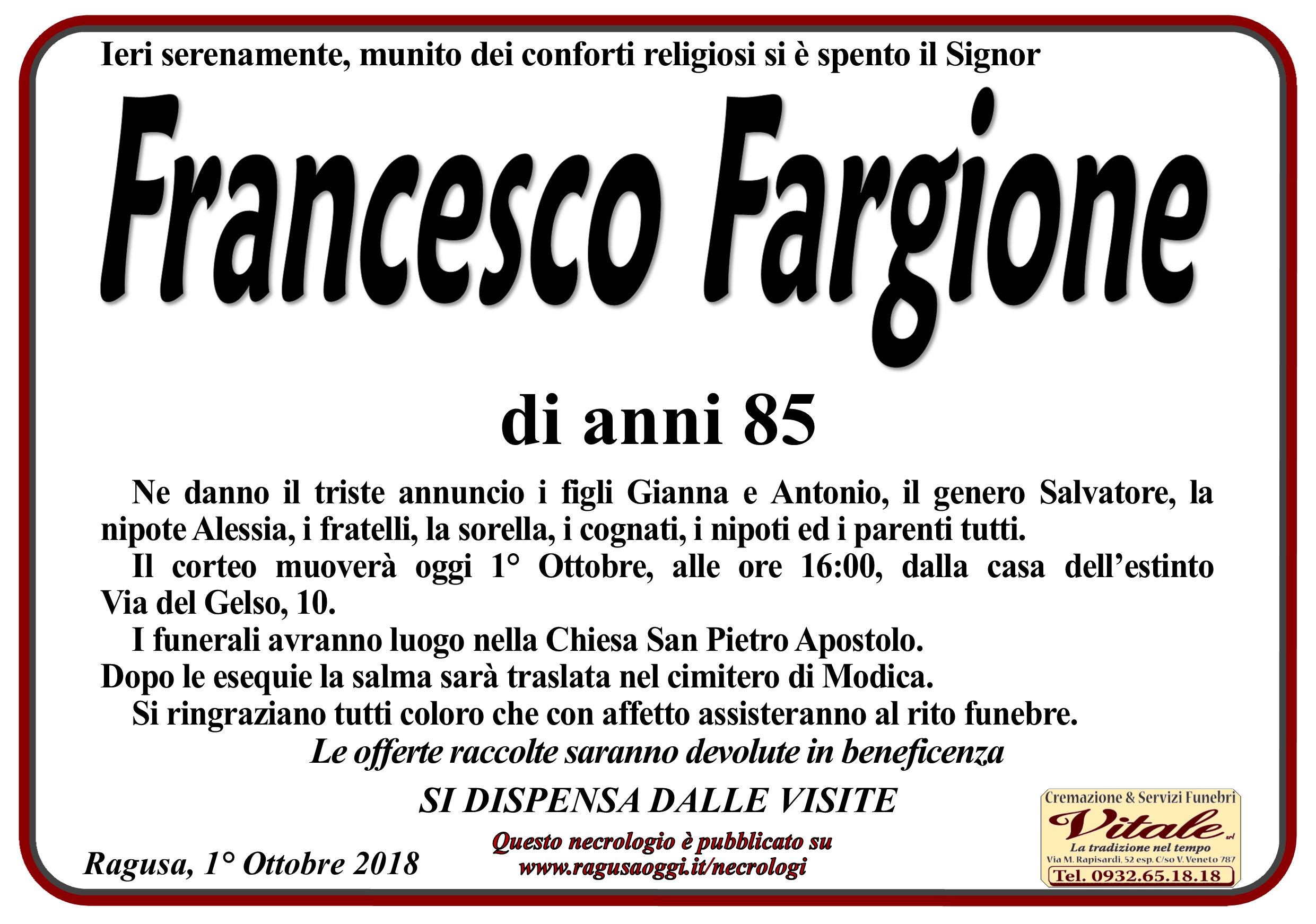 Necrologi: Francesco Fargione