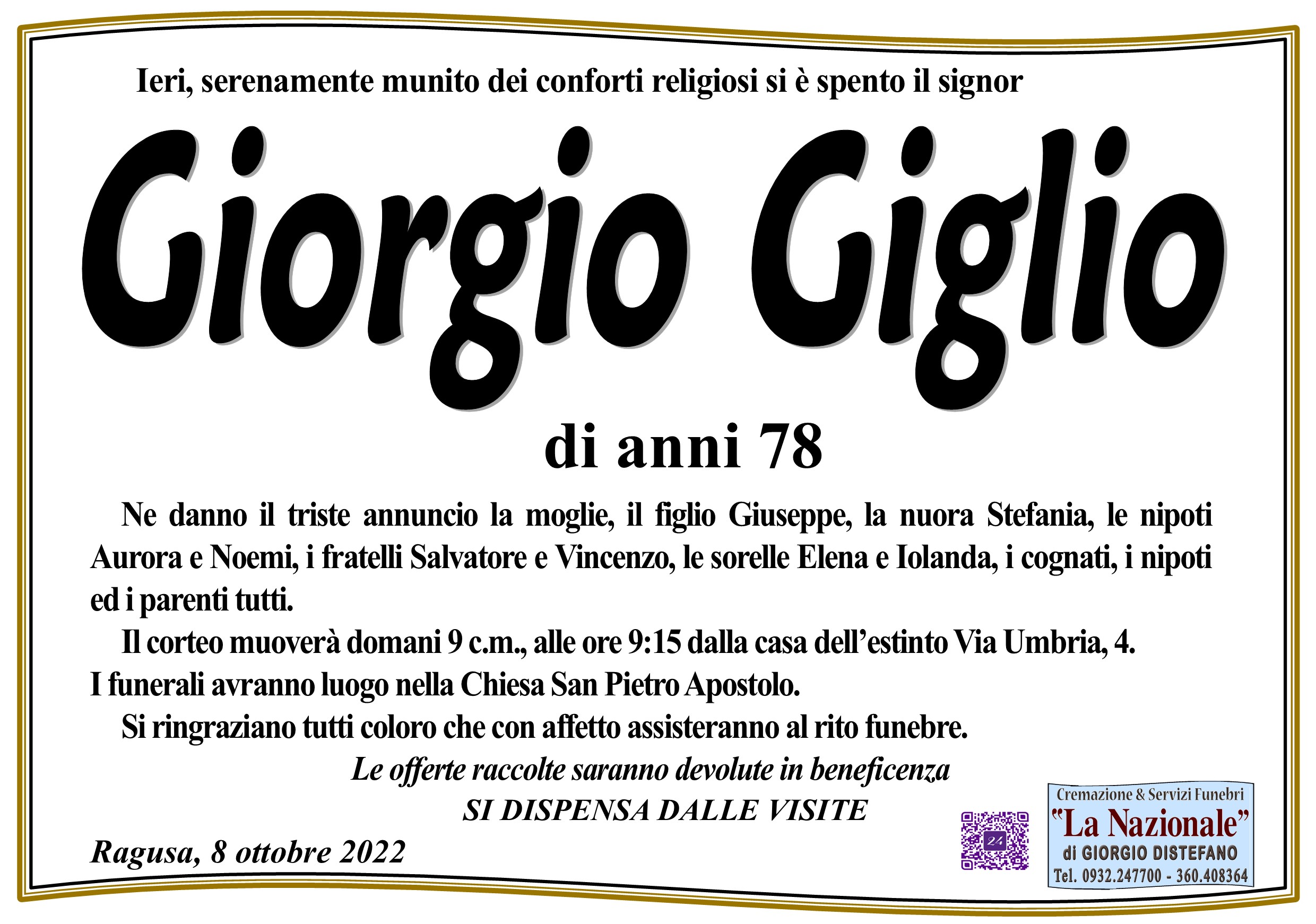 Necrologi: Giorgio Giglio
