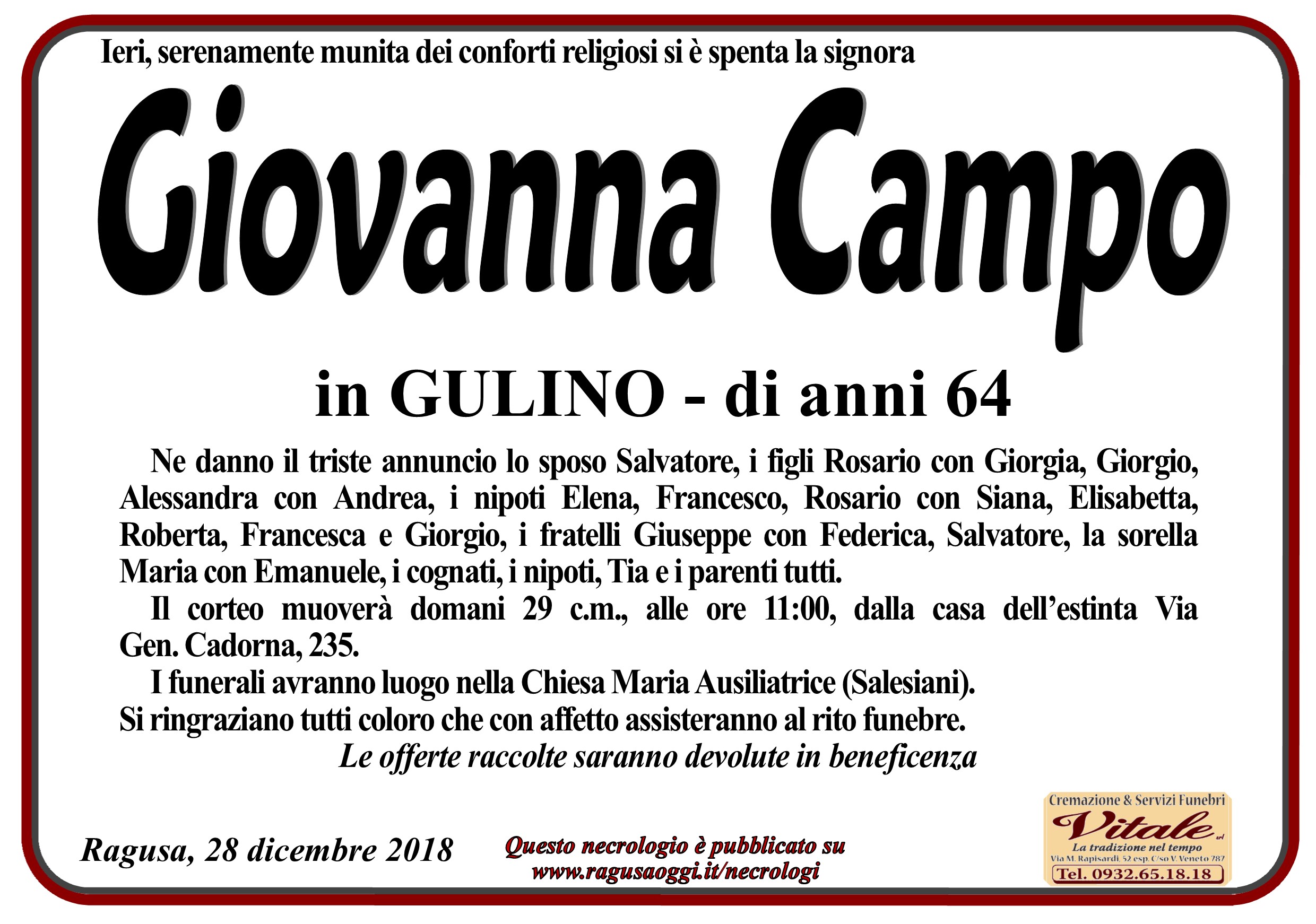 Necrologi : Giovanna Campo