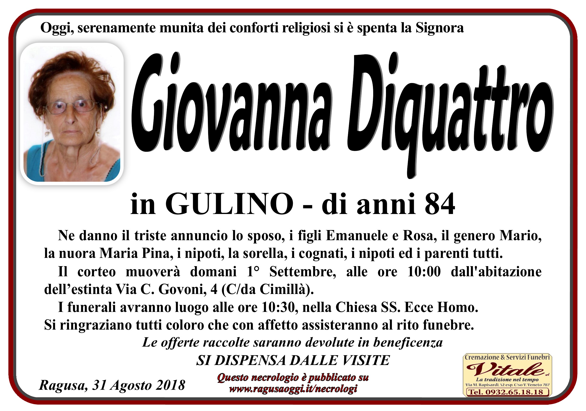 Necrologi: Giovanna Diquattro