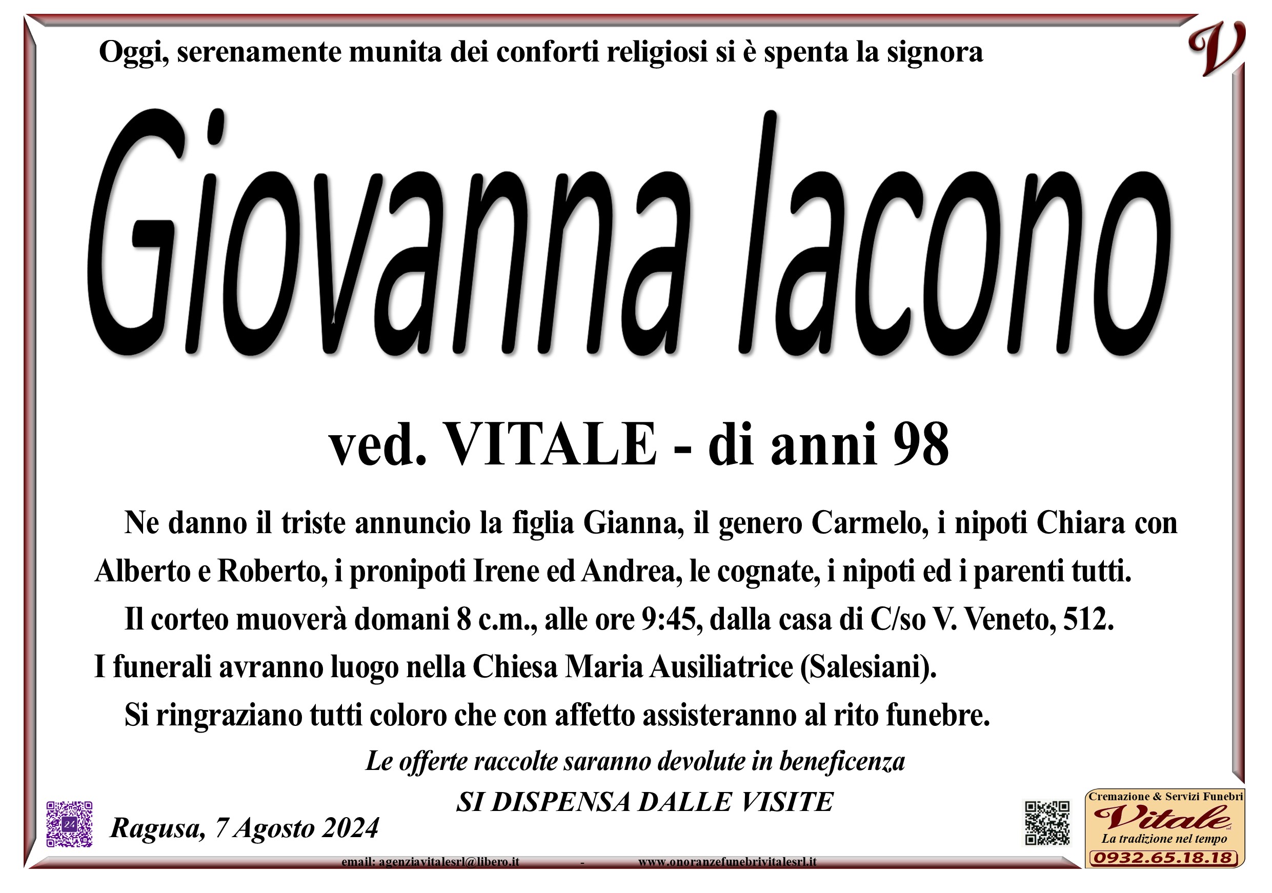 Necrologi: Giovanna Iacono