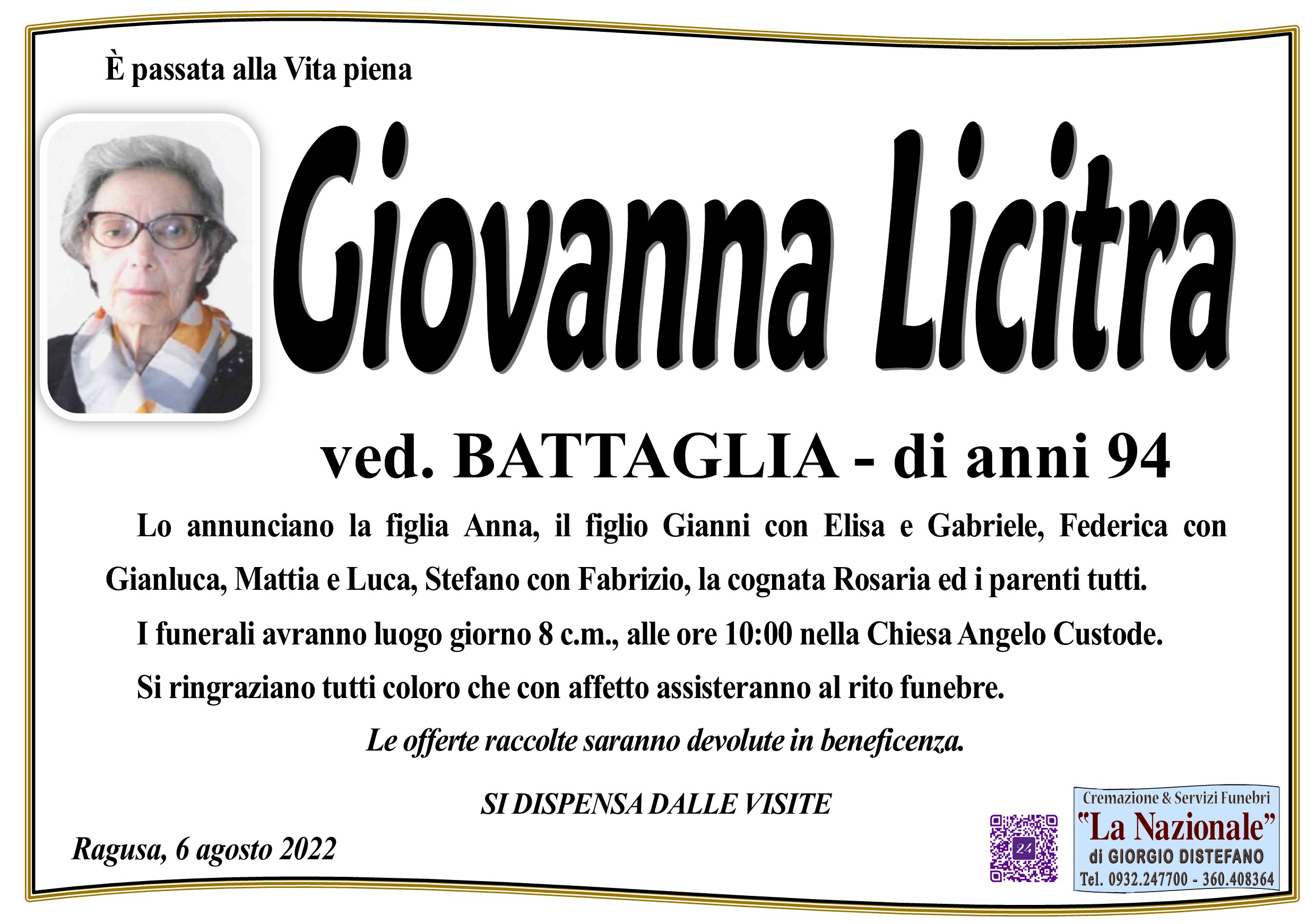 Necrologi: Giovanna Licitra