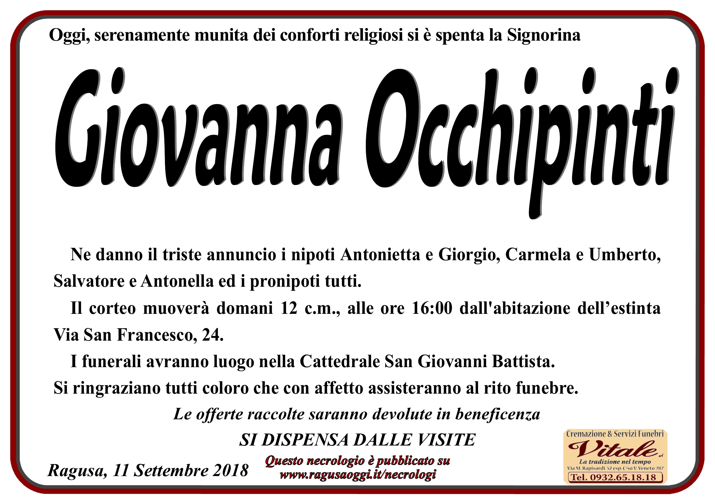 Necrologi: Giovanna Occhipinti