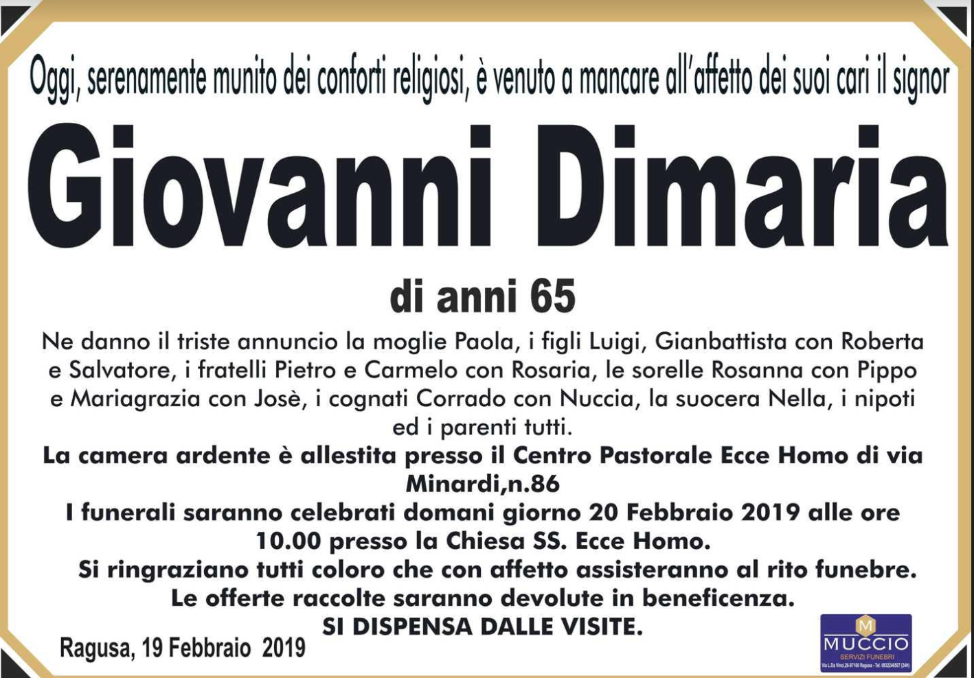 Necrologi: Giovanni Dimaria