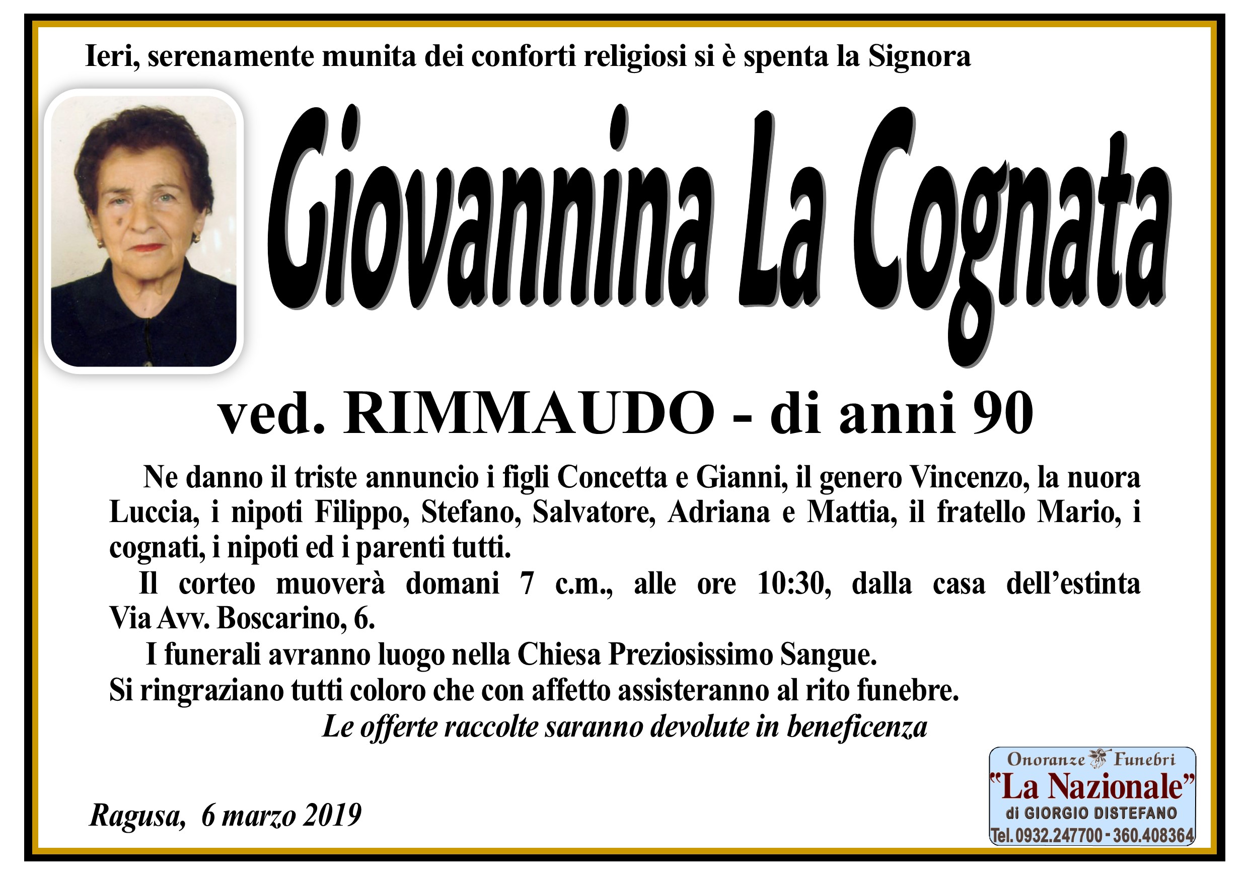 Necrologi: Giovannina La Cognata
