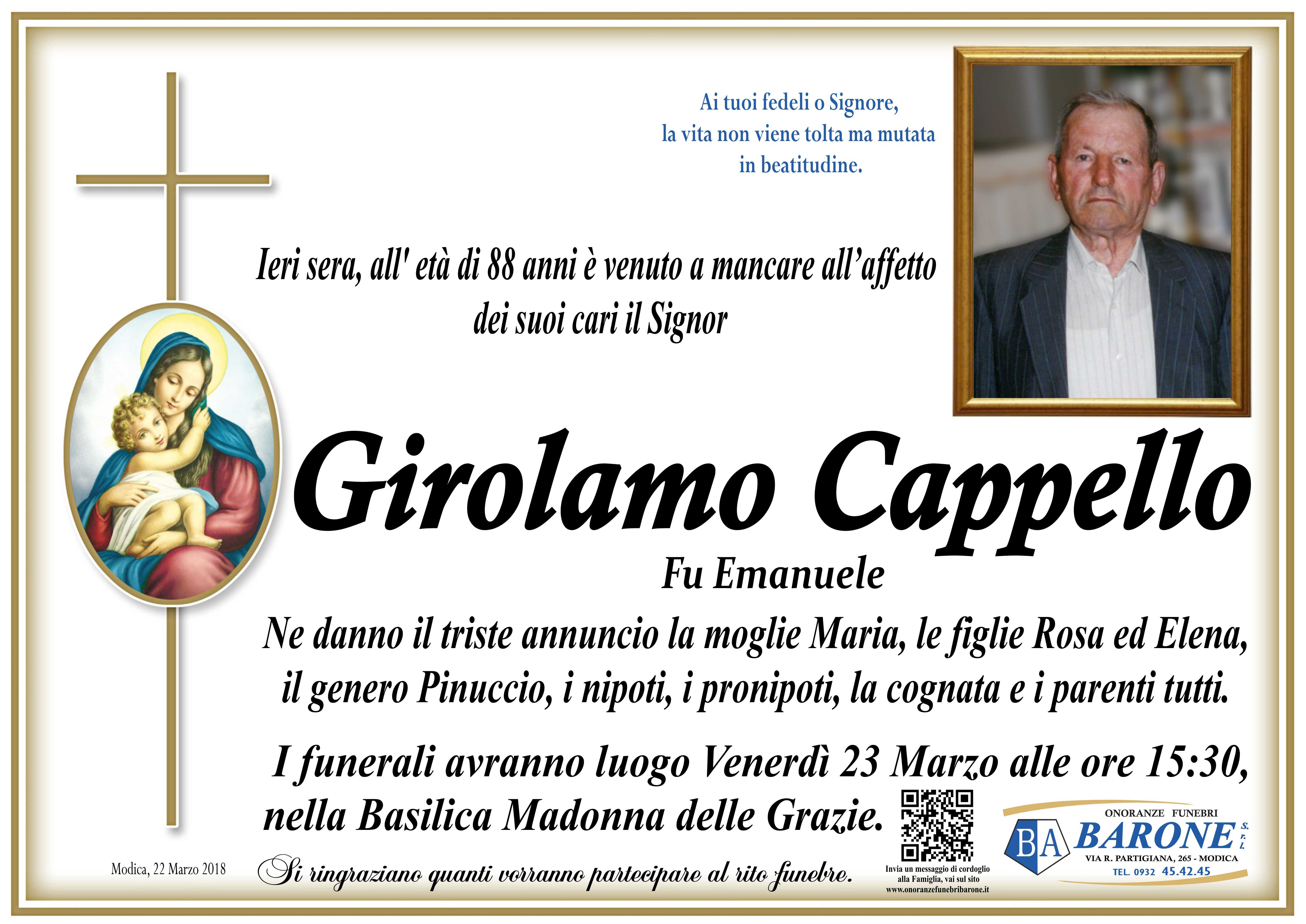 Necrologi: Girolamo Cappello