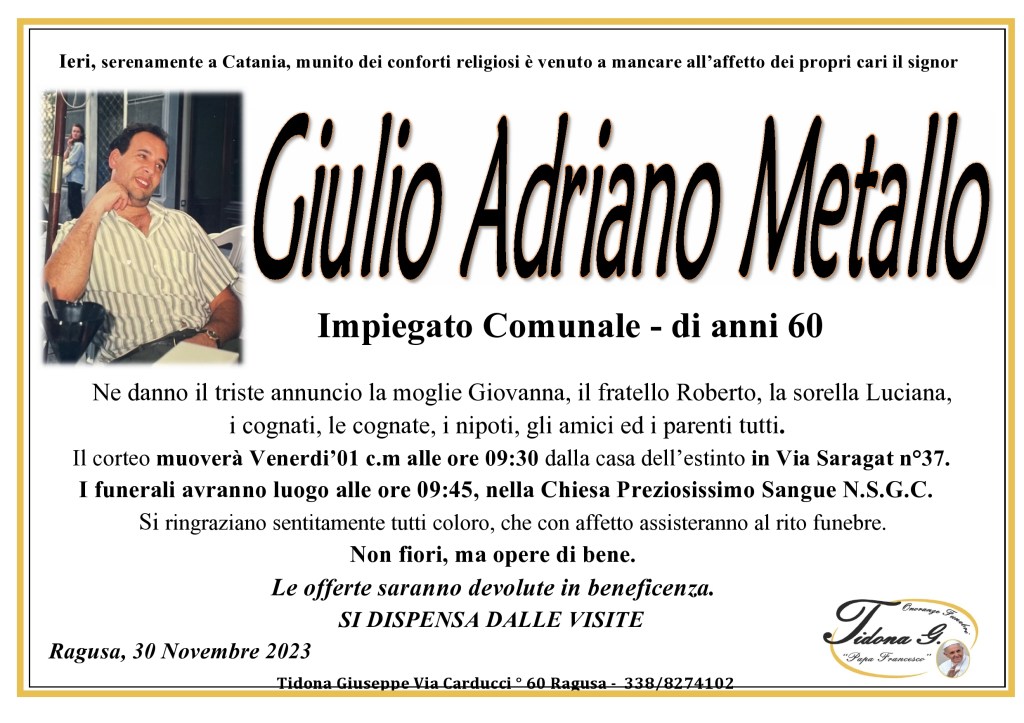 Necrologi: Giulio Adriano Metallo