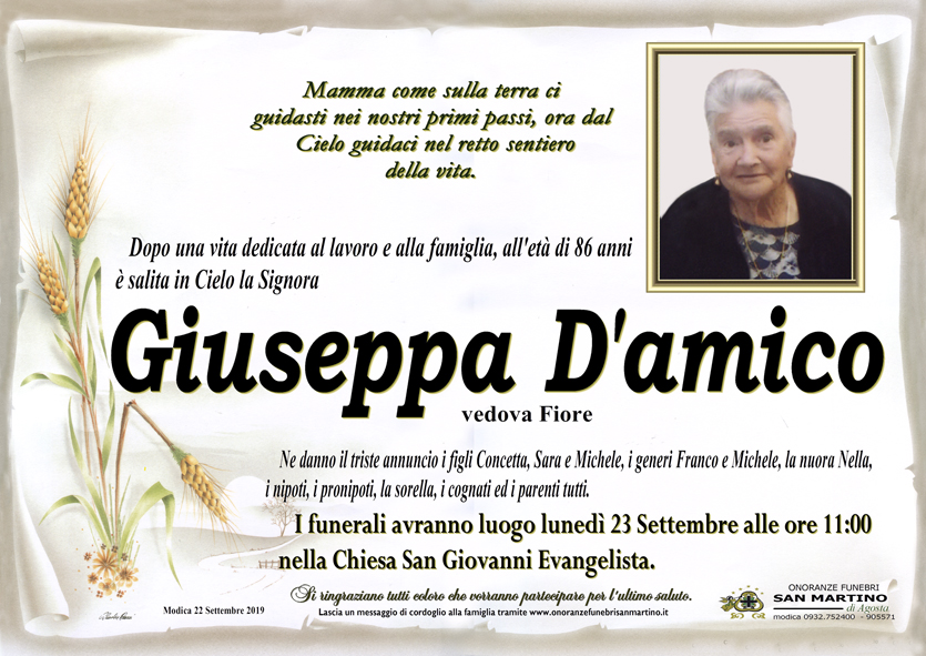 Necrologi: Giuseppa D’Amico
