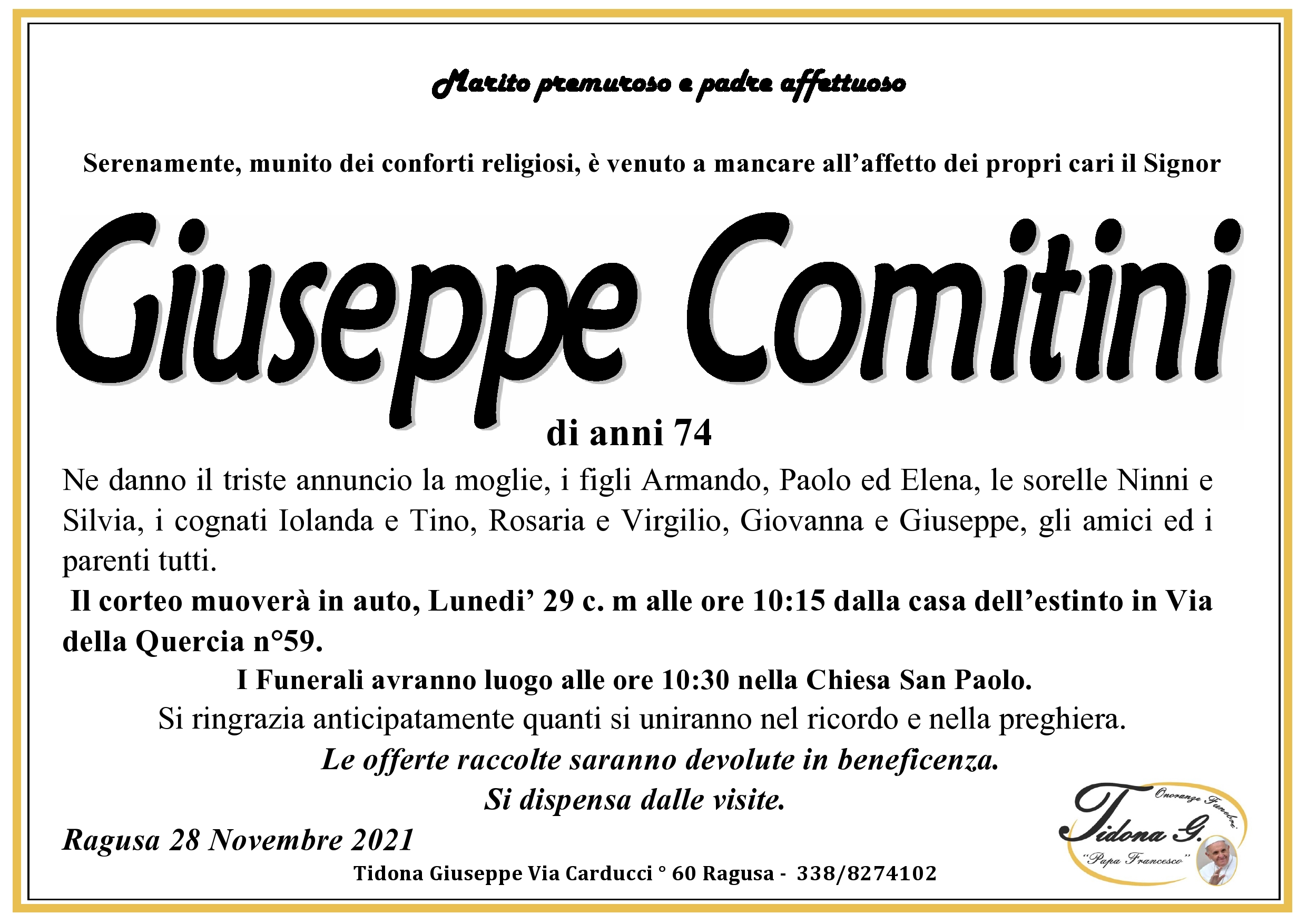 Necrologi: Giuseppe Comitini