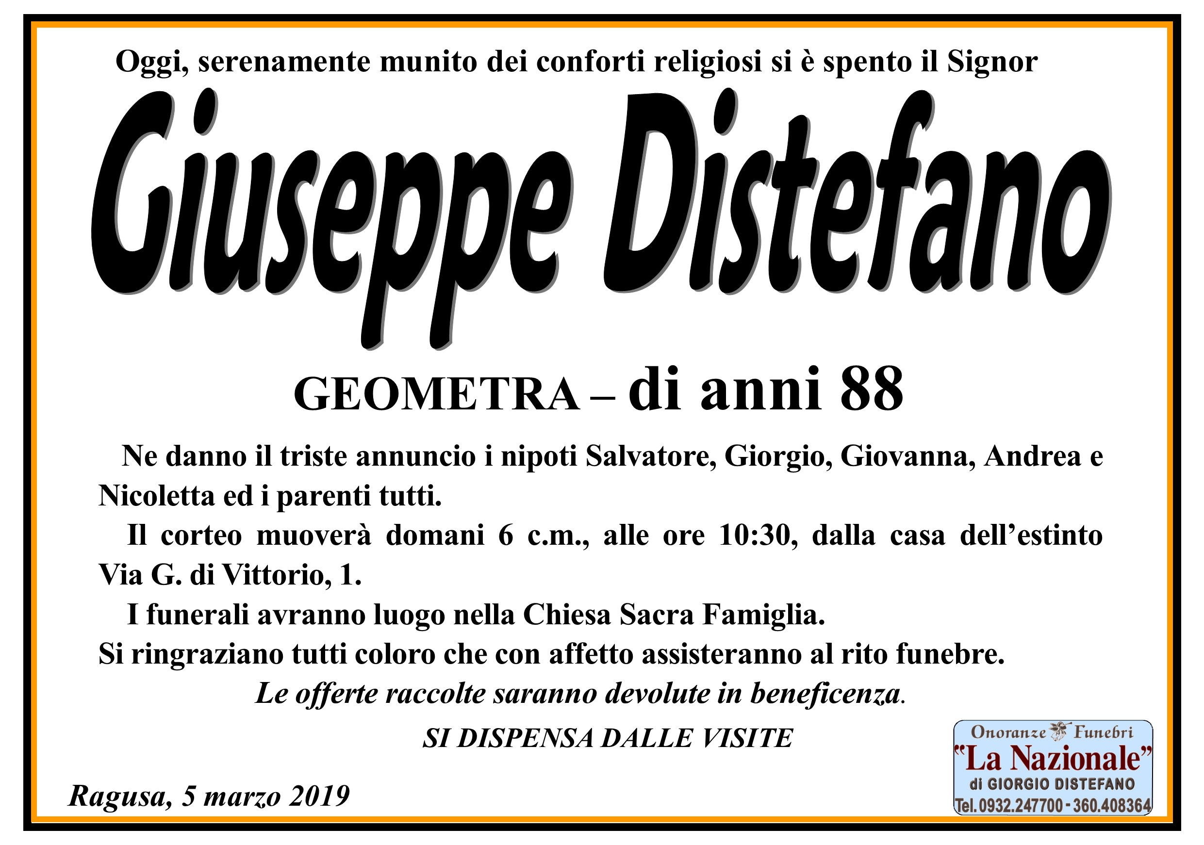 Necrologi: Giuseppe Distefano