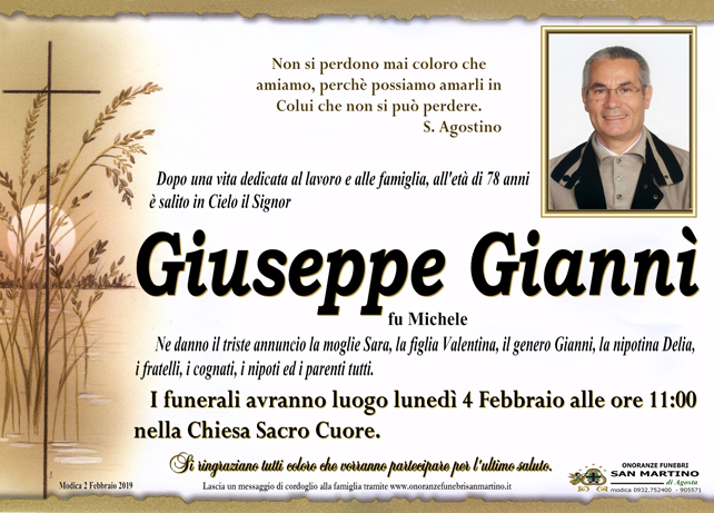 Necrologi: Giuseppe Giannì