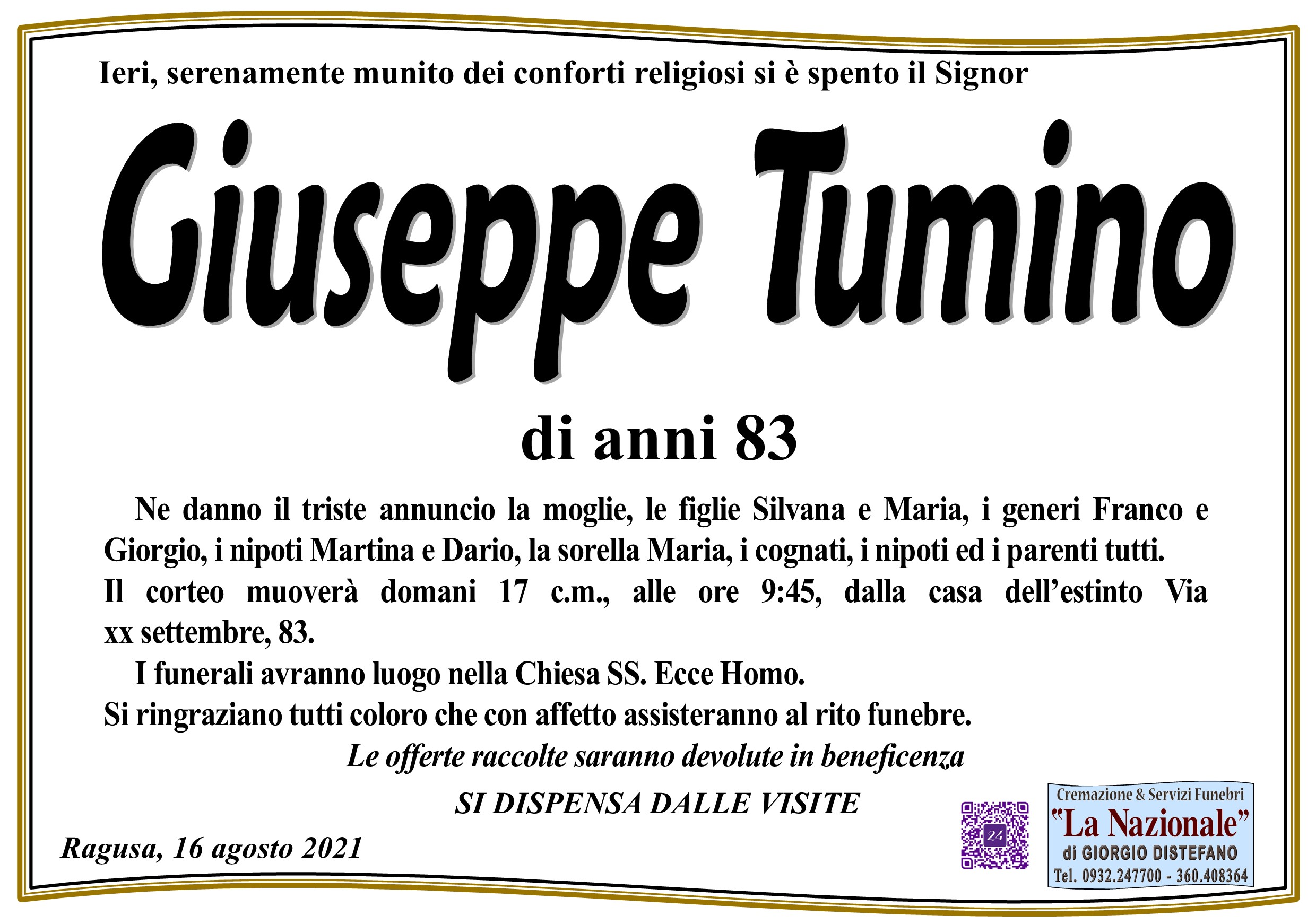 Necrologi: Giuseppe Tumino