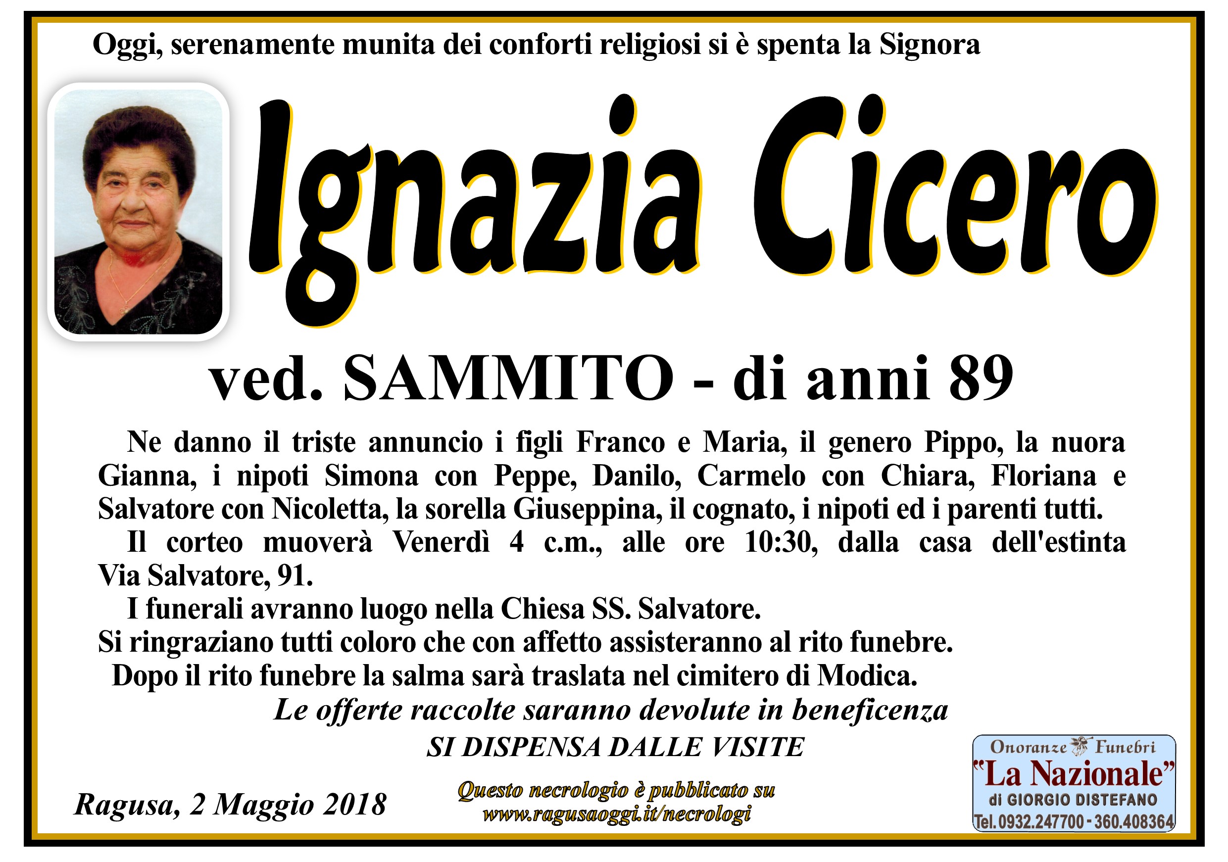 Necrologi: Ignazia Cicero