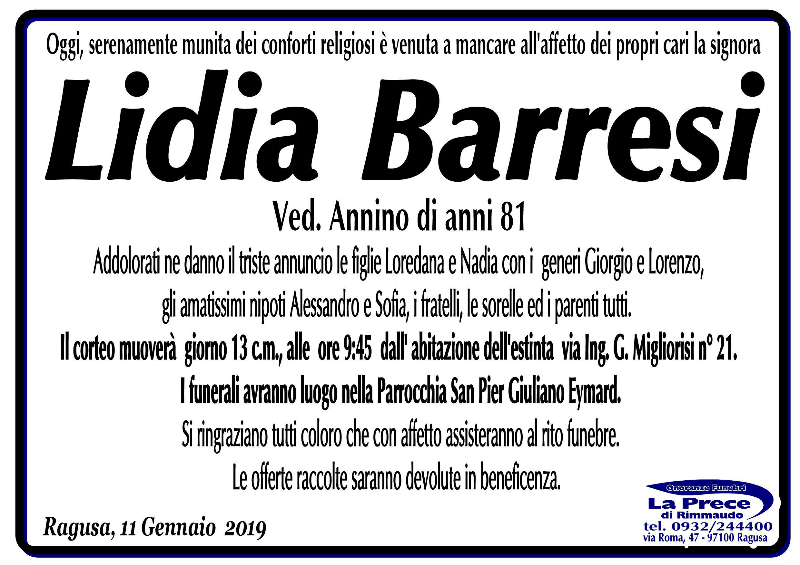 Necrologi: Lidia Barresi