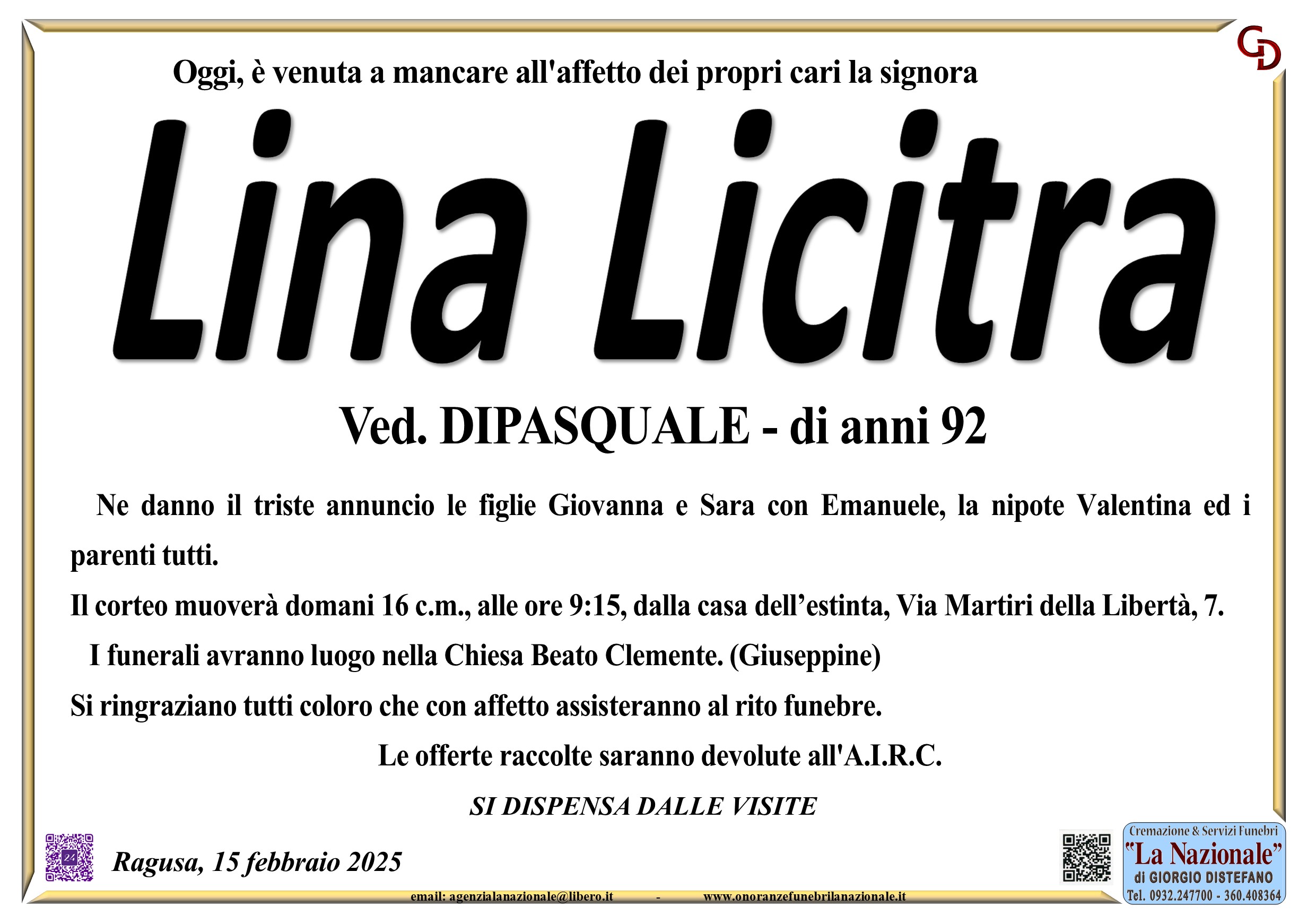 Necrologi: Lina Licitra