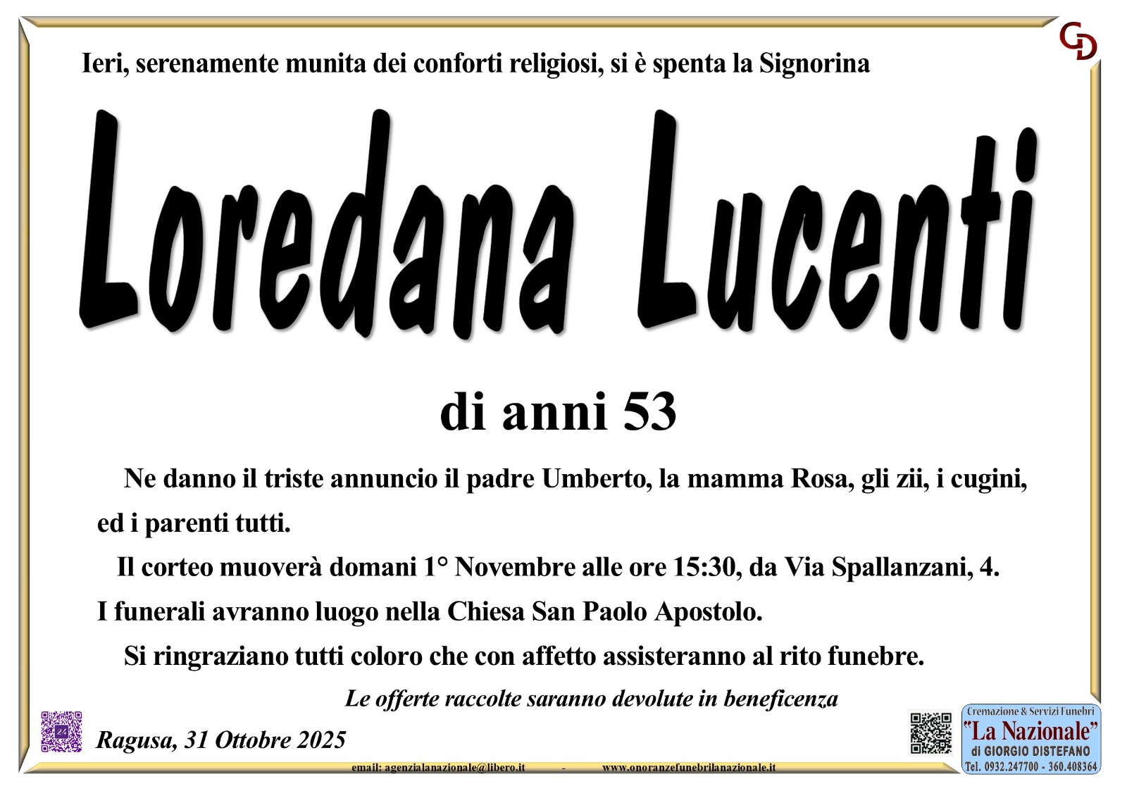 Necrologi: Loredana Lucenti
